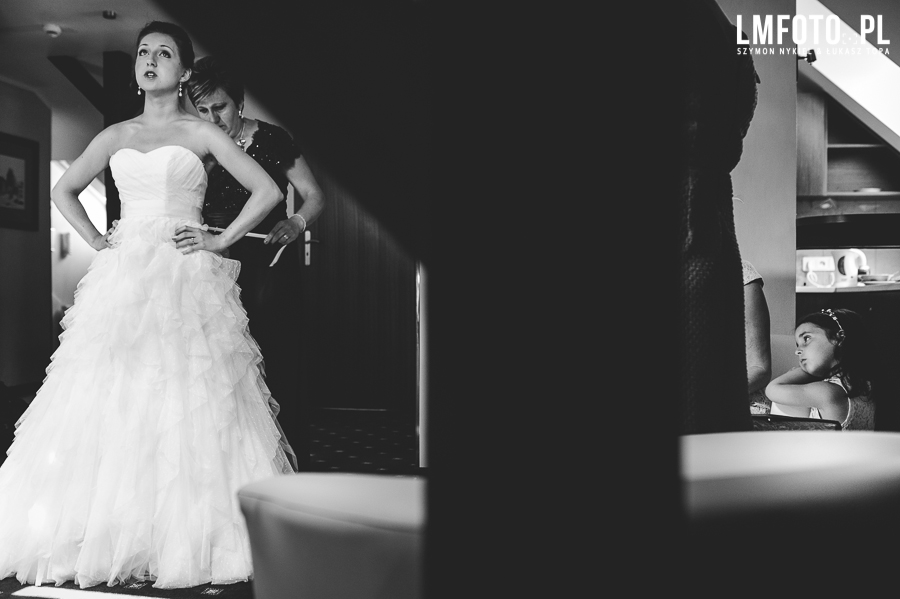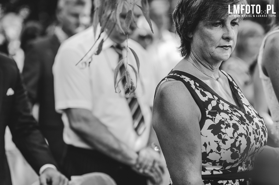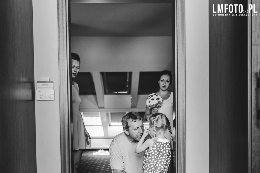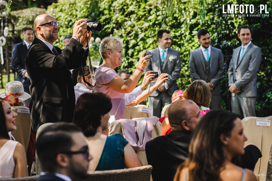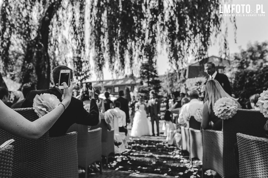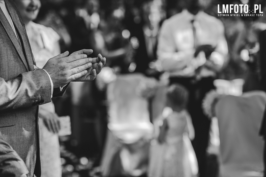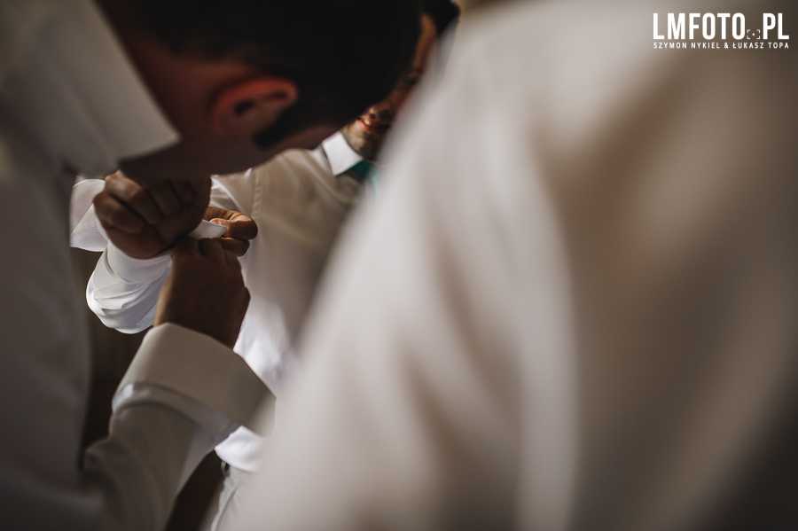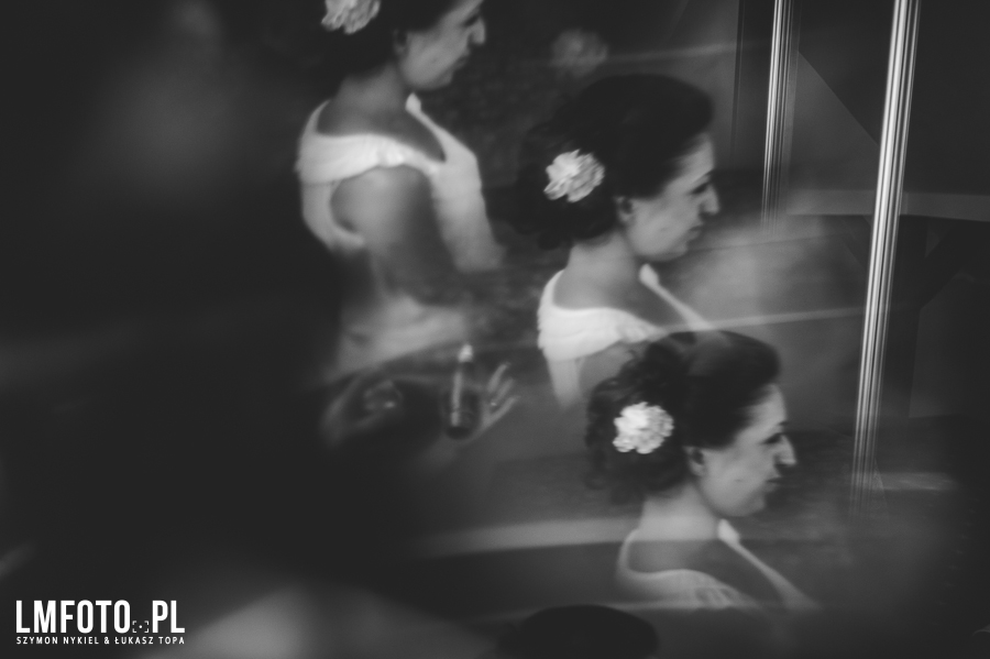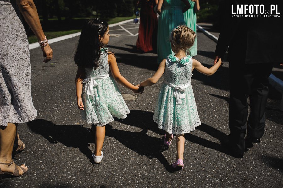 Podejrzewam, że każdy z Was, kiedy usłyszy o dniu/weekendzie wolnym od pracy pomyśli sobie „bomba!!!”. Ja jednak postanowiłem jeden ze swoich wolnych weekendów wykorzystać na spojrzenie na ślub z nieco innej perspektywy. Brak konieczności wykonania poprawnych zdjęć daje wielką swobodę działania. Okazuję się również, że poza głównymi tematami podczas uroczystości ślubnej dzieje się mnóstwo emocjonujących zdarzeń dokoła – dlaczego więc z tego wszystkiego nie skorzystać:) Widząc świetną możliwość rozwoju własnego warsztatu postanowiłem potowarzyszyć Łukaszowi Ostrowskiemu koledze po fachu. To był jeden z powodów wyjątkowości dla mnie tego ślubu.