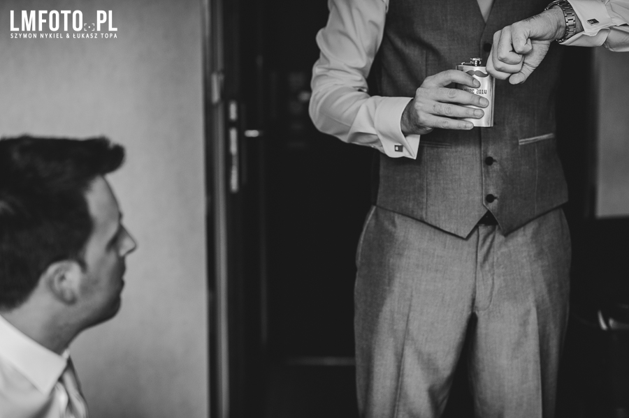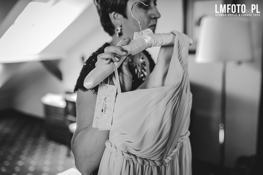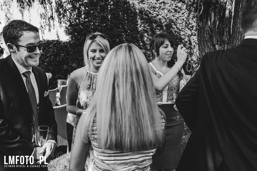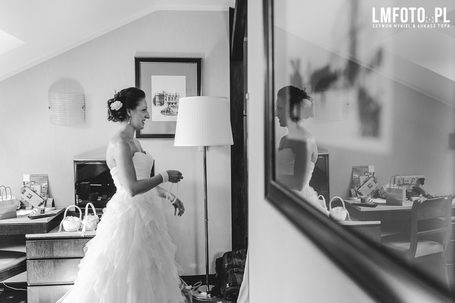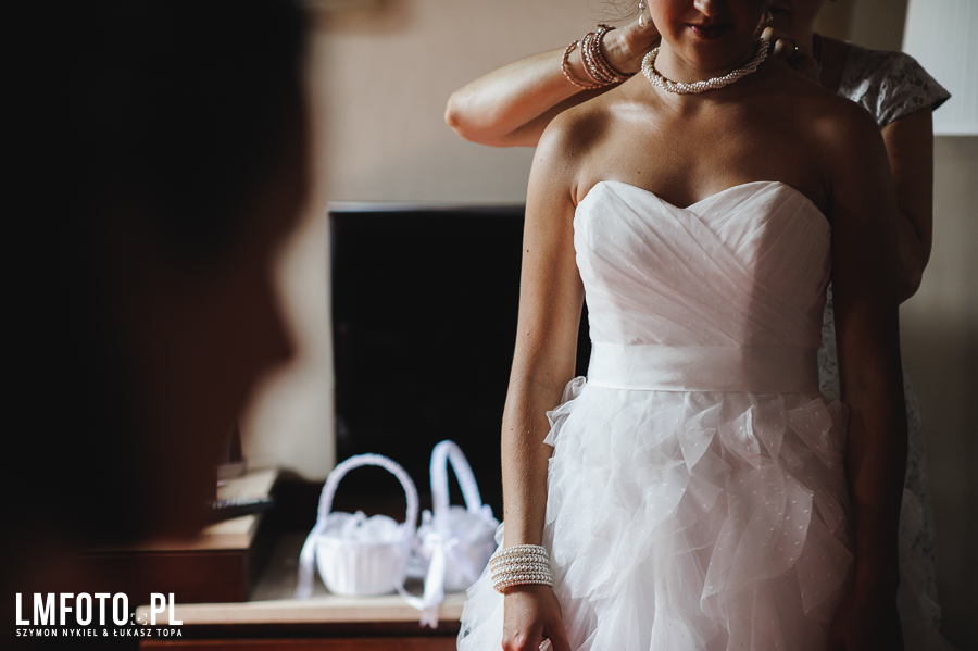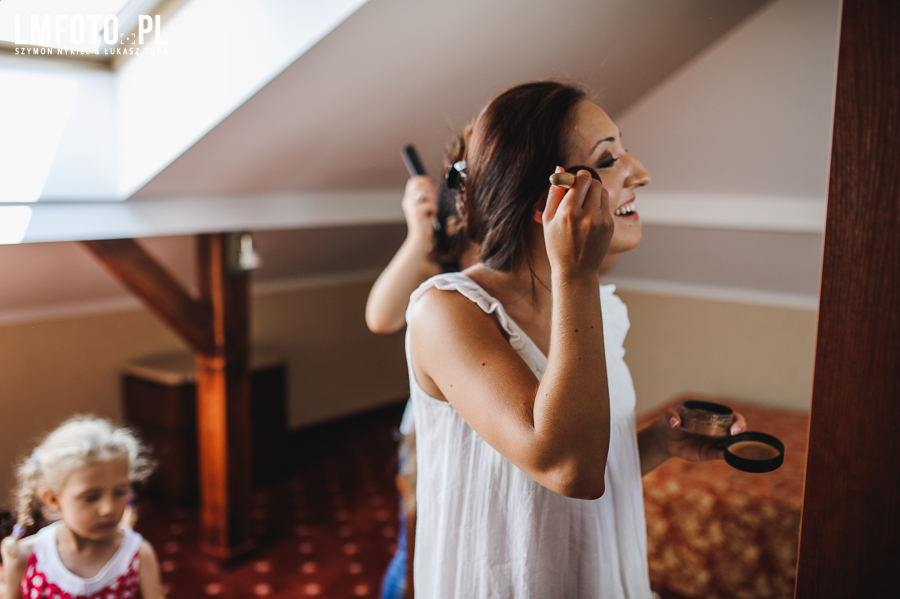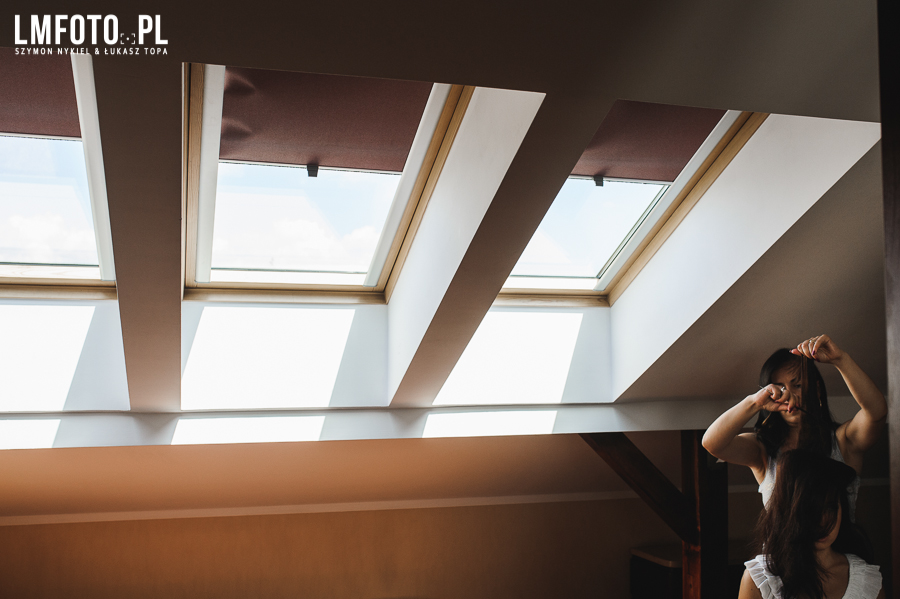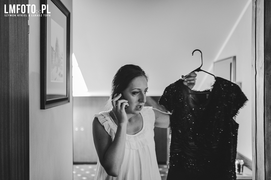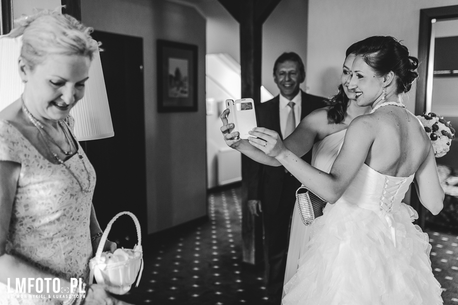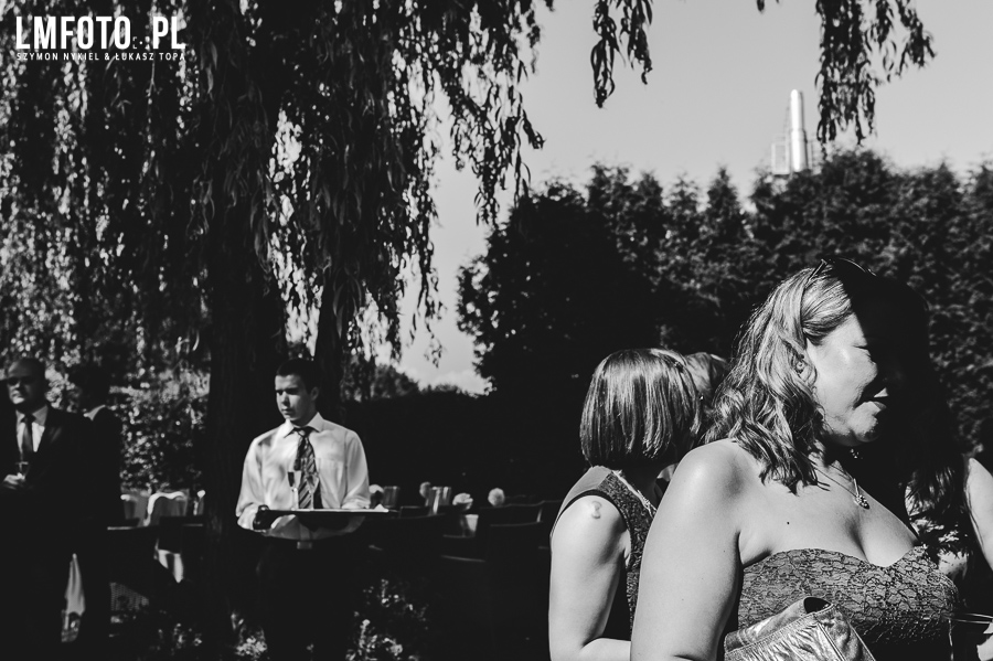 Podejrzewam, że każdy z Was, kiedy usłyszy o dniu/weekendzie wolnym od pracy pomyśli sobie „bomba!!!”. Ja jednak postanowiłem jeden ze swoich wolnych weekendów wykorzystać na spojrzenie na ślub z nieco innej perspektywy. Brak konieczności wykonania poprawnych zdjęć daje wielką swobodę działania. Okazuję się również, że poza głównymi tematami podczas uroczystości ślubnej dzieje się mnóstwo emocjonujących zdarzeń dokoła – dlaczego więc z tego wszystkiego nie skorzystać:) Widząc świetną możliwość rozwoju własnego warsztatu postanowiłem potowarzyszyć Łukaszowi Ostrowskiemu koledze po fachu. To był jeden z powodów wyjątkowości dla mnie tego ślubu.