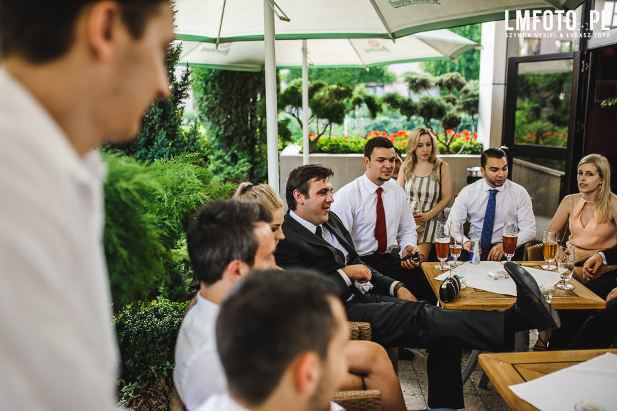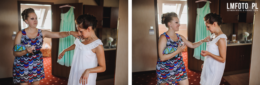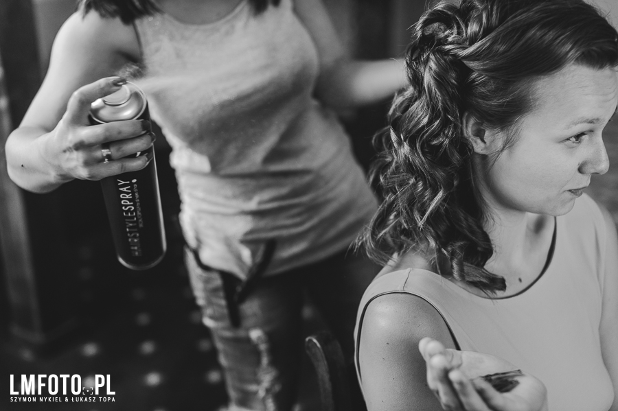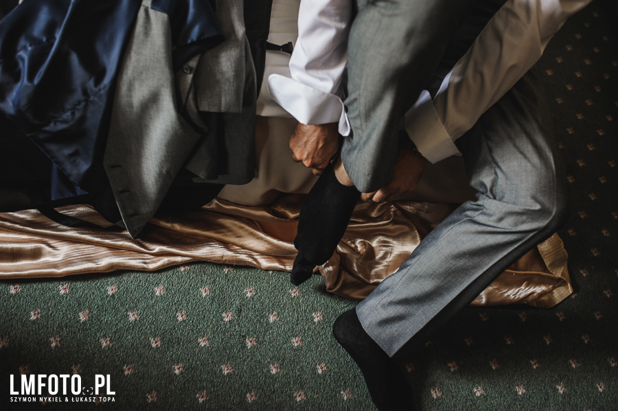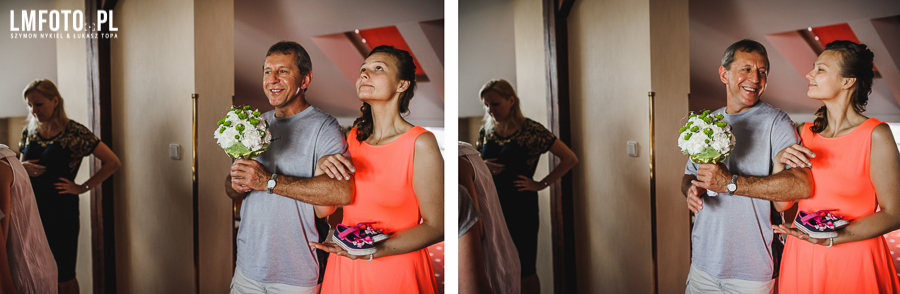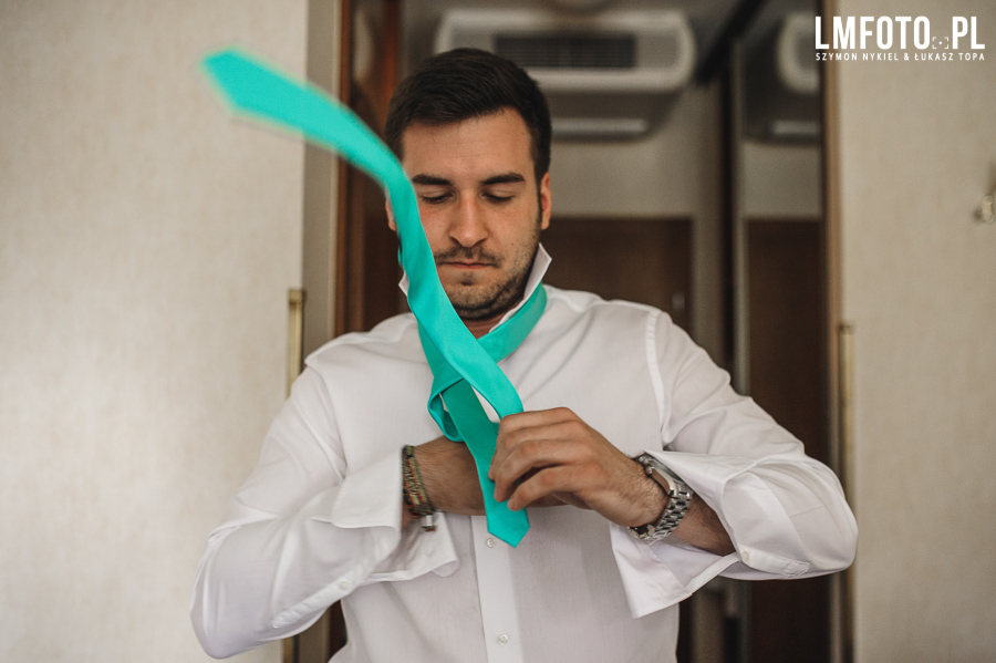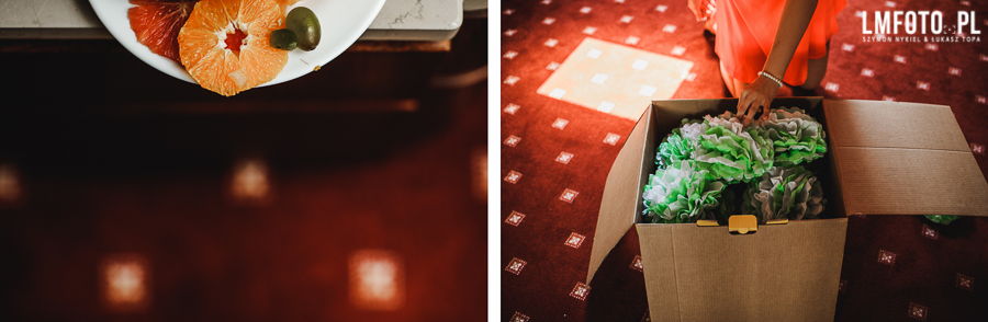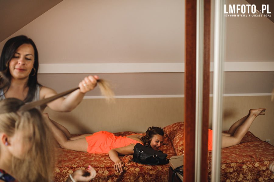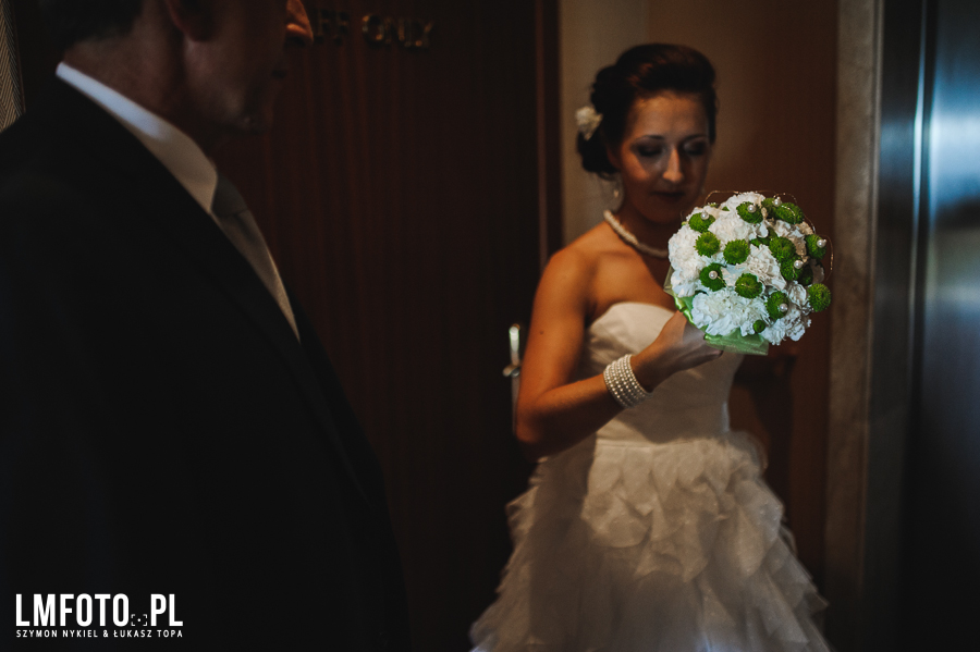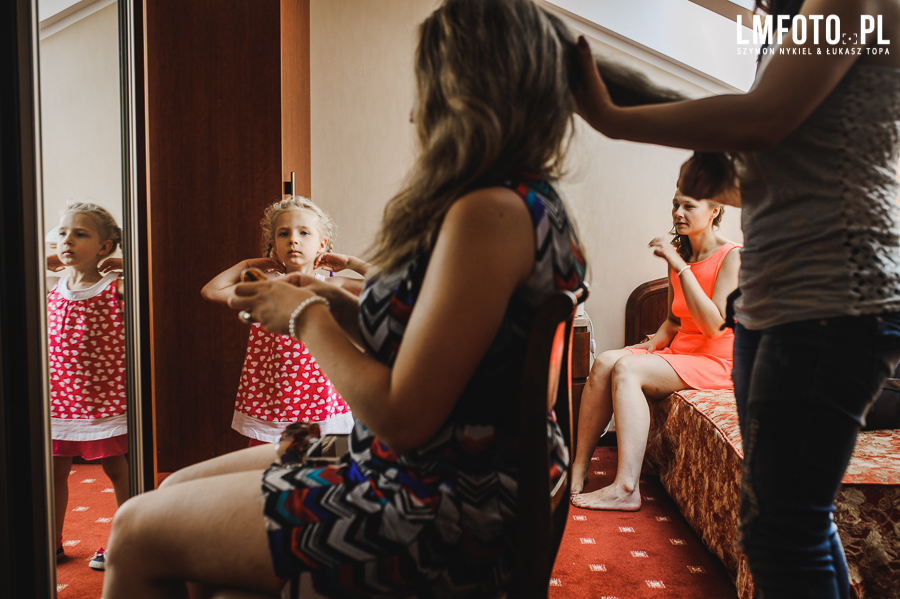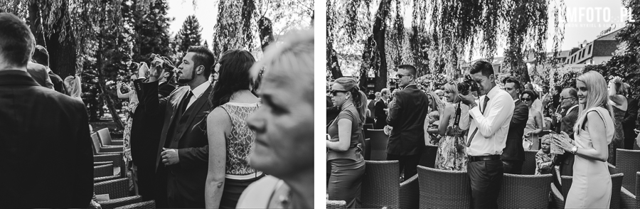 Podejrzewam, że każdy z Was, kiedy usłyszy o dniu/weekendzie wolnym od pracy pomyśli sobie „bomba!!!”. Ja jednak postanowiłem jeden ze swoich wolnych weekendów wykorzystać na spojrzenie na ślub z nieco innej perspektywy. Brak konieczności wykonania poprawnych zdjęć daje wielką swobodę działania. Okazuję się również, że poza głównymi tematami podczas uroczystości ślubnej dzieje się mnóstwo emocjonujących zdarzeń dokoła – dlaczego więc z tego wszystkiego nie skorzystać:) Widząc świetną możliwość rozwoju własnego warsztatu postanowiłem potowarzyszyć Łukaszowi Ostrowskiemu koledze po fachu. To był jeden z powodów wyjątkowości dla mnie tego ślubu.