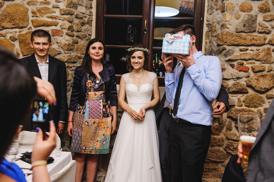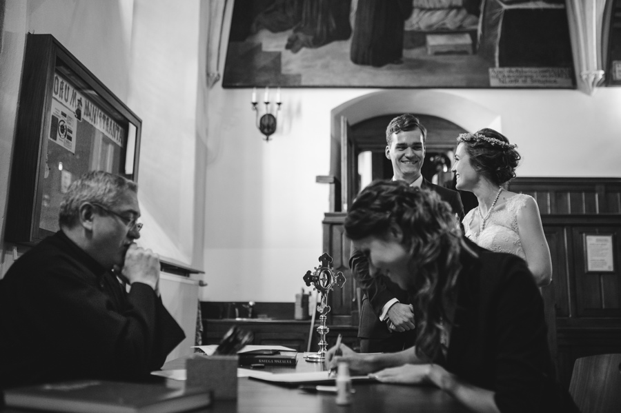 Czasami jest tak, że spotykamy na swojej drodze pary młode, które potrafią zaufać Nam w 100%, wierząc w nasze umiejętności i doceniając nasz warsztat. Angażują się w każdy szczegół swojego wesela myśląc o tym, czy coś będzie z korzyścią dla zdjęć, czy też nie. Właśnie tak wyglądała moja współpraca z Anią i Michałem. Czułem, że nadajemy na tych samych falach i mam pełne zaufanie z ich strony. Oni sami dali od siebie bardzo dużo dbając o najmniejsze detale począwszy od sukienki i garnituru, aż po dekoracje na samej zabawie. Wiedziałem też, że wymagają niesztampowego podejścia. Takiego podejścia, gdzie „obowiązkowe zdjęcia stają się nieobowiązkowymi, a nieobowiązkowe, stają się obowiązkowymi” 🙂