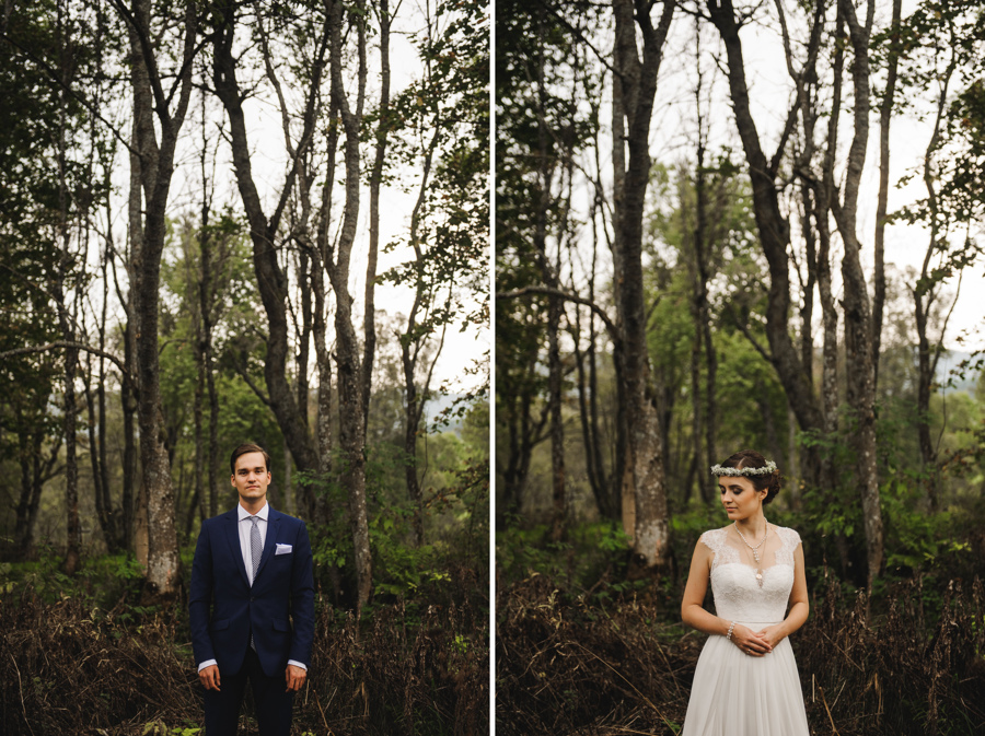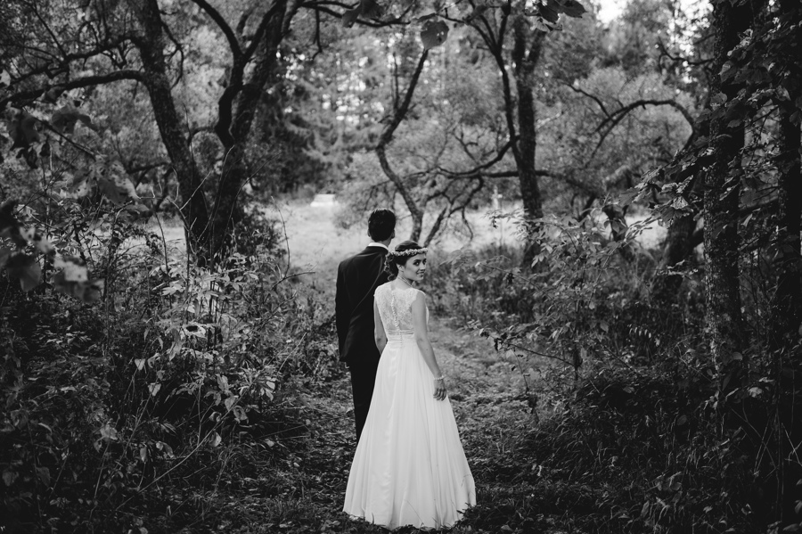 A mnie się podoba zdjęcie czarno-białe w lesie jak panna młoda się odwraca, niesamowite:)
