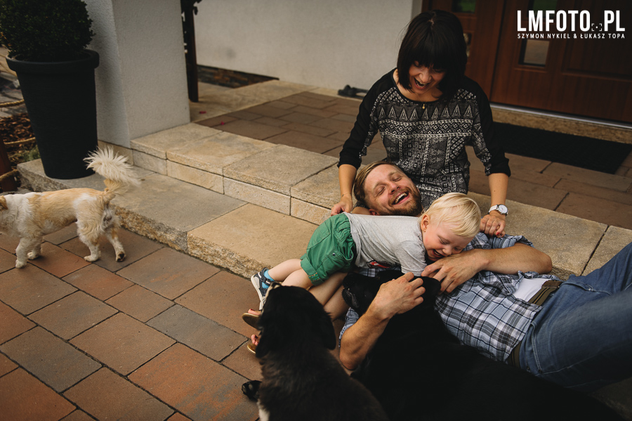 Arranging our meeting took a long while but it was worth it! Even the four-legged family members, dogs Isman, Bundy, Galgan and Pestka took part in the photo session. I had so much fun watching Radek being cheeky to his parents. Even the cloudy weather did not bother us; what many people don’t realise is that such conditions are actually perfect when it comes to taking pictures and the photos do not necessarily come out ‘grey’. Here I would like to invite you to take a look at the ‘insignificant’, every day fun and play with Jagoda, Rafal and Radek.