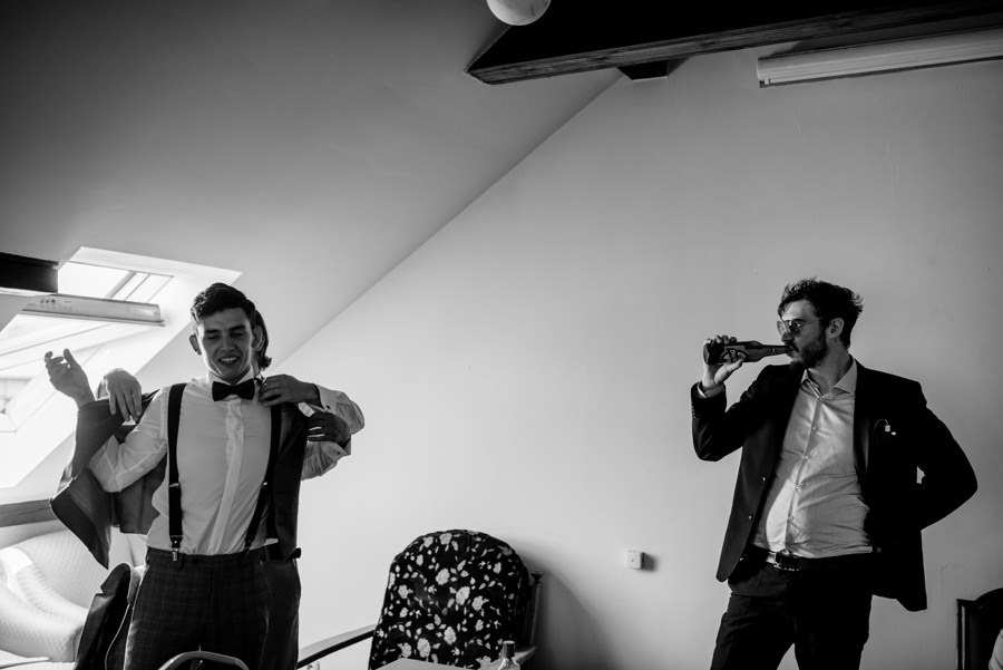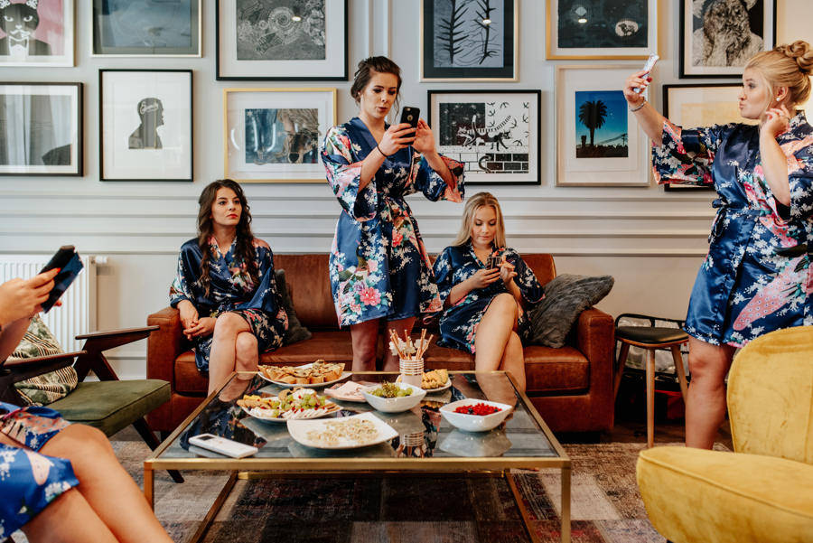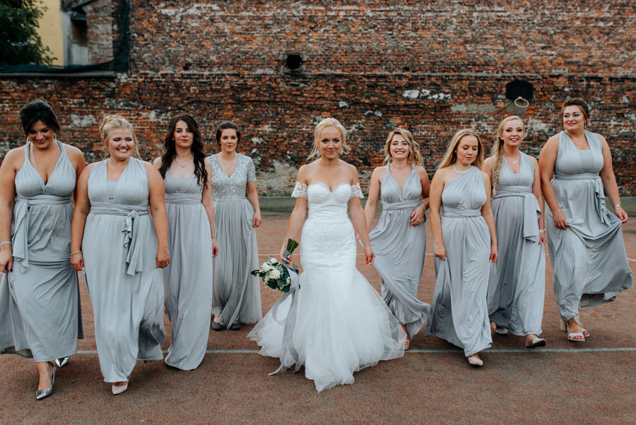 Do dziś jestem pod wrażeniem orszaku na ślubie Patrycji i Sebastiana. Pierwszy raz widziałem (i to na żywo, a nie że na zdjęciach) 8 druhen i 8 drużbów! Wszyscy w szaro-srebrnych strojach; dziewczyny w sukniach i z bukietami, a panowie z muchami i szelkami. A druhny nawet na przygotowaniach miały identyczne kwieciste szlafroczki.