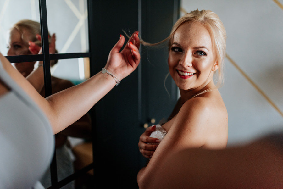 Z Patrycją i Sebastianem znamy się od czasów naszych LM-owych warsztatów fotograficznych w Folwarku Wiązy. To właśnie oni byli modelami i cierpliwie pozowali do zdjęć. Fajnie było ponownie się z nimi spotkać, tym razem na ich ślubie. Oboje bardzo mocno zaangażowali się w jego organizację. I to pomimo, że na co dzień mieszkają w Norwegii i czasu wcale nie mają w nadmiarze. Ale znaleźli go na to, by poświęcić wiele uwagi swojemu weselu. I przyznam to otwarcie – widać było to zaangażowanie w każdym detalu.