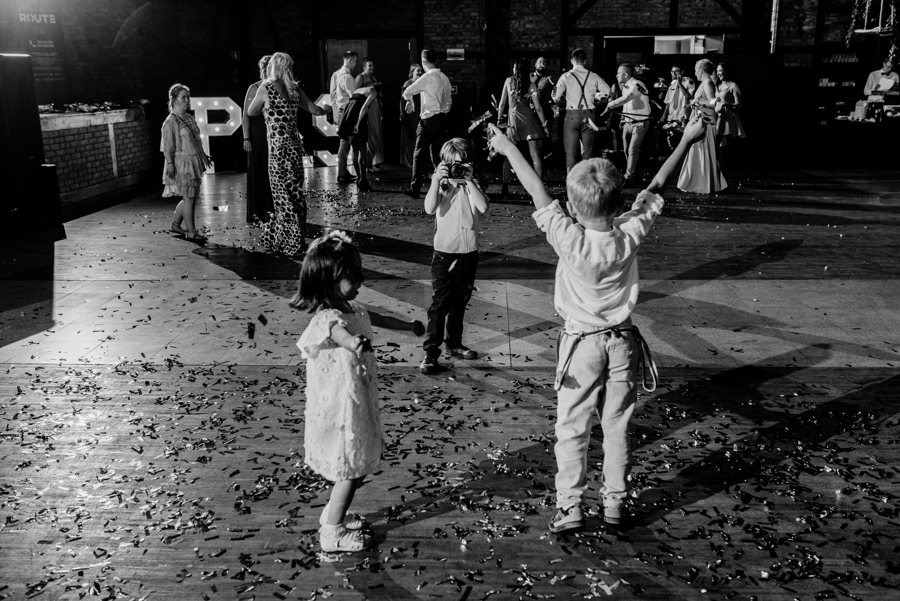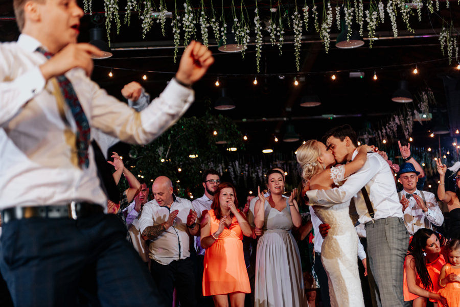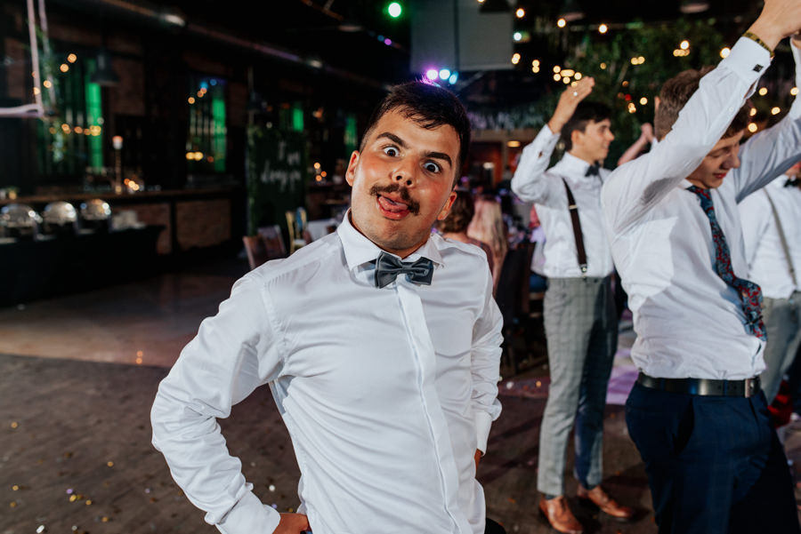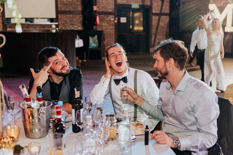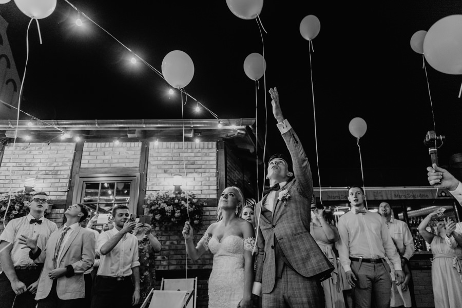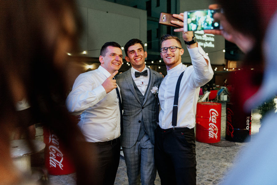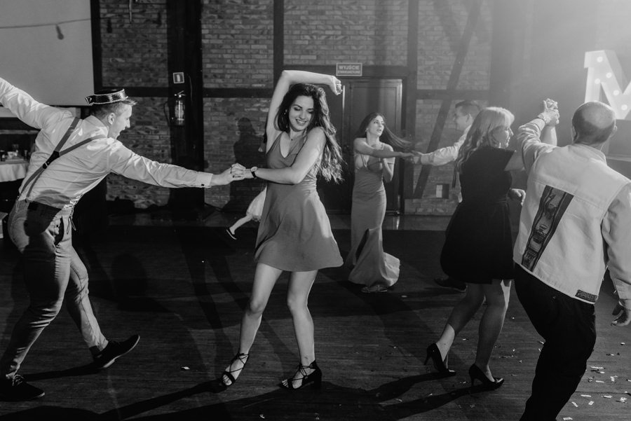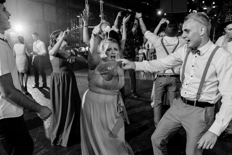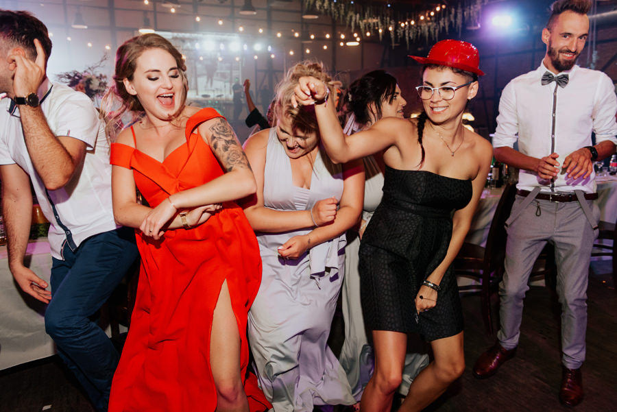 Serio, jeśli chcecie mieć mega imprezę polecam zespół Route 66. To co działo się po oczepinach – opad szczęki. Pod koniec zabaw zrealizowali szalony pomysł Patrycji i Sebastiana – coś w stylu lip-dub do miksu kilku krótkich fragmentów piosenek, a wszystko to rejestrował Michał z Evil Wolf Studio kręcąc bez przerwy jakby teledysk z udziałem poszczególnych stolików. Goście zachwycenia, a efekt – mega! Ale to nie wszystko – oczywiście na tym weselu działo się dużo i dla każdego było coś innego. Słodkie stoły z pysznościami, drinki, zimne ognie. A mnie podobał się bardzo mini bus, który robił za fotobudkę! Te wszystkie dodatki sprawiły, że to industrialne wesele będzie jednym z najbardziej niezapomnianych realizacji.