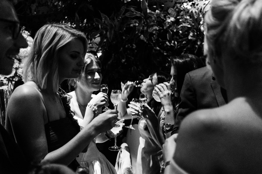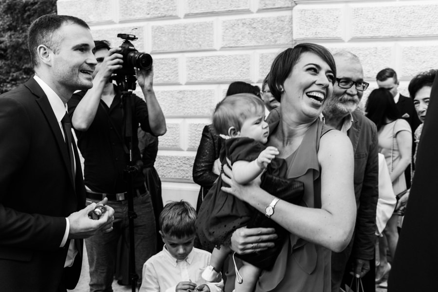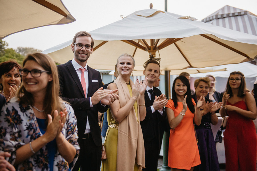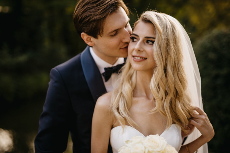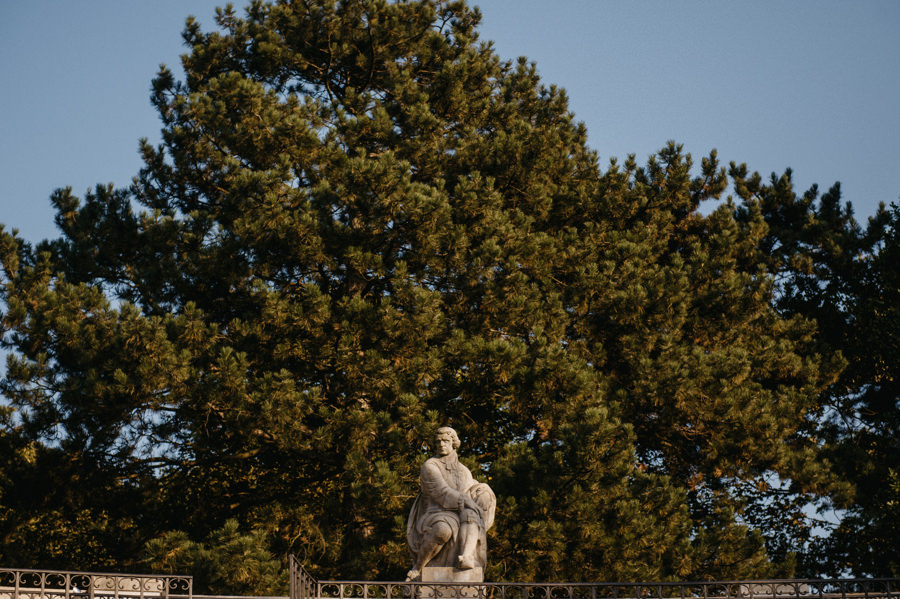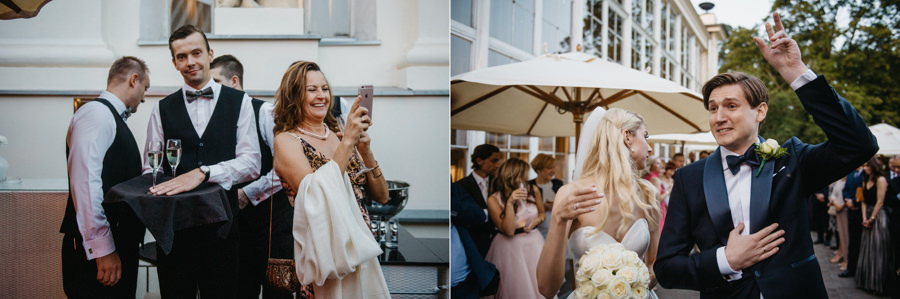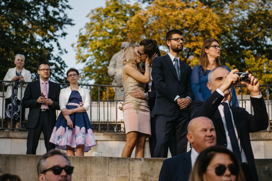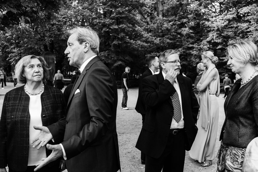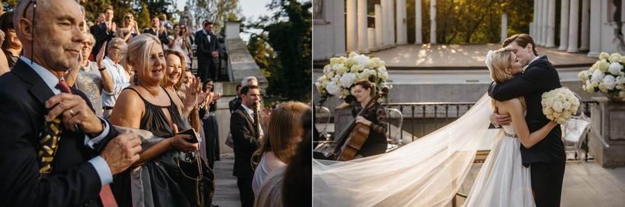Po ceremonii goście złożyli życzenia i udali się na spacer uliczkami Łazienek aż do lokalu. Tam czekały na nich przekąski, które umilały oczekiwanie na parę. Bo nie mogłem odmówić sobie zrobienia klasycznych ślubnych portretów w takim otoczeniu.