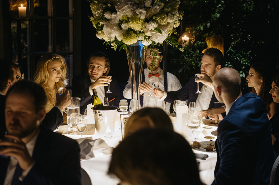 W ten dzień wszystko było połączeniem klasycznej elegancji, tradycji i dobrego stylu. Już od przygotowań w kamienicy pełnej drobnych detali, które zapewne miały ogromną wartość sentymentalną, aż po wybór miejsca ślubu i wesela. Plenerowa ceremonia zaślubin w Łazienkach, na tle amfiteatru, a potem wytworne przyjęcie w restauracji Belvedere w budynku Nowej Oranżerii w Warszawie. Piękno tkwiło w prostocie. Oszałamiał wybór klasycznych form, które nigdy nie wyjdą z mody.