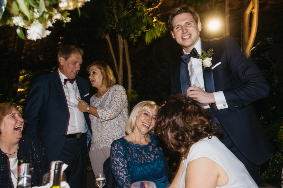 Restauracji Belvedere nie trzeba nikomu przedstawiać. To miejsce zachwyca historią, architekturą i smakiem. W takim lokalu przyjęcie to gwarancja wytworności i doskonałego kunsztu organizacji. Wewnątrz zachwycają tropikalne rośliny, które same w sobie są ładnym elementem wystroju. I właśnie w takich wnętrzach przyszło bawić się gościom na weselu Zuzy i Piotra. Zapraszam Was do obejrzenia ślubu w plenerze w Łazienkach i przyjęcia pełnego doskonałego smaku z nutą elegancji w Restauracji Belvedere