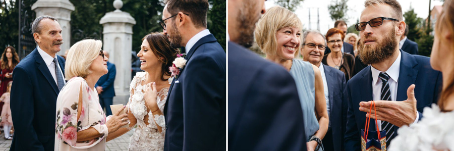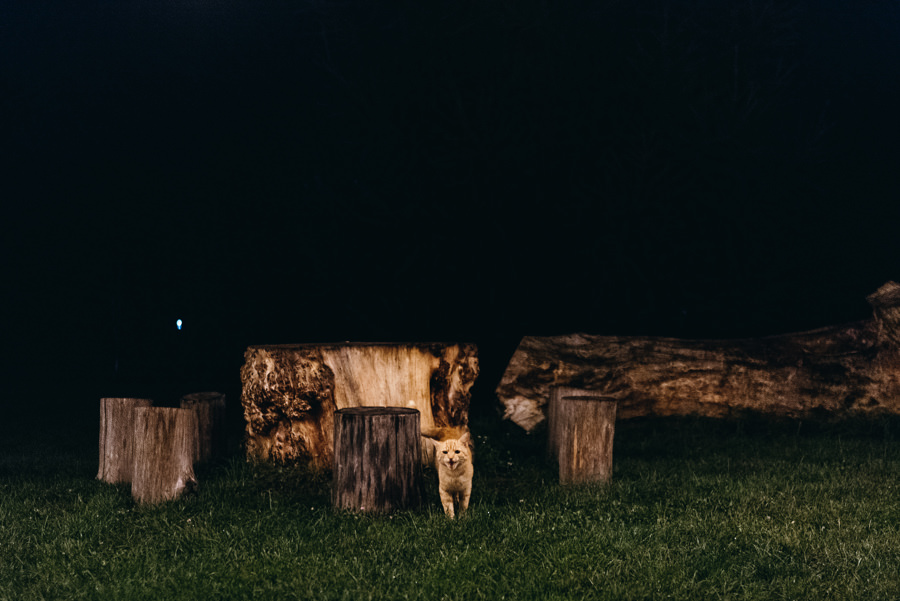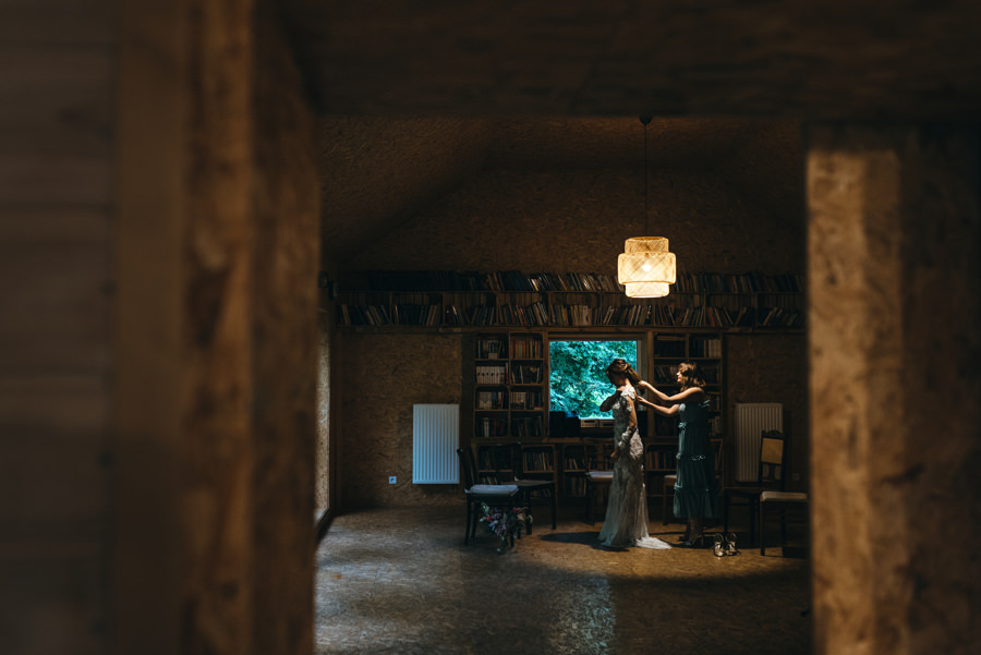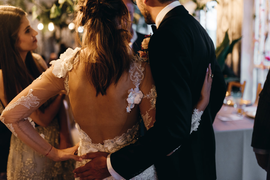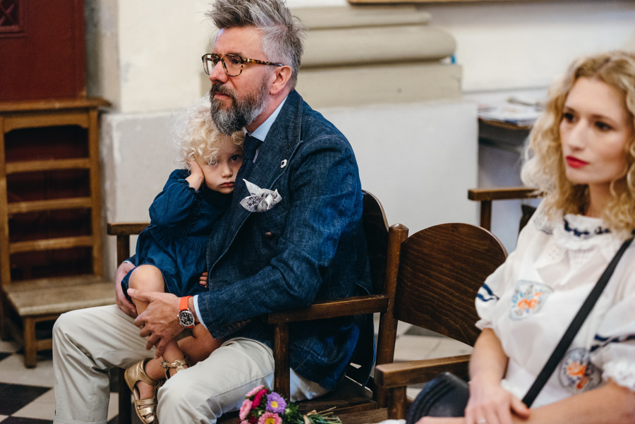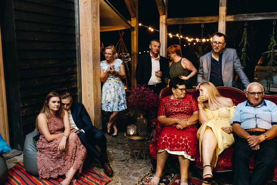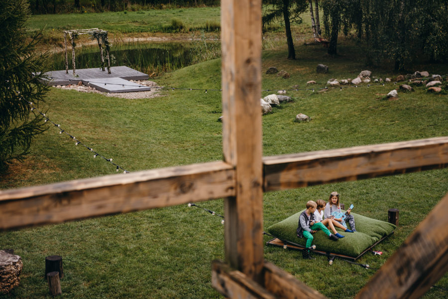 Mnie podobała się biblioteka z setką książek, drewniane huśtawki i wiele innych drobiazgów które sprawiają, że w tym miejscu czuć artystyczne dusze, które to projektowały. A inne dusze łapią teraz ten klimat i czują się tu wspaniale. Bo, aby w pełni rozkoszować się tym miejscem, trzeba umieć wrzucić na luz i totalnie oddać się zabawie. Tak jak zrobili to Ola i Dominik. Nie ukrywam, że duży na to wpływ miały także konsultantki ślubne z Krainy Ślubów Warszawska Orkiestra Sentymentalna, które to wszystko ogarniały.