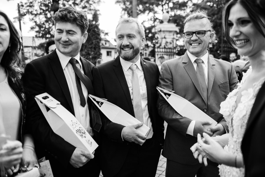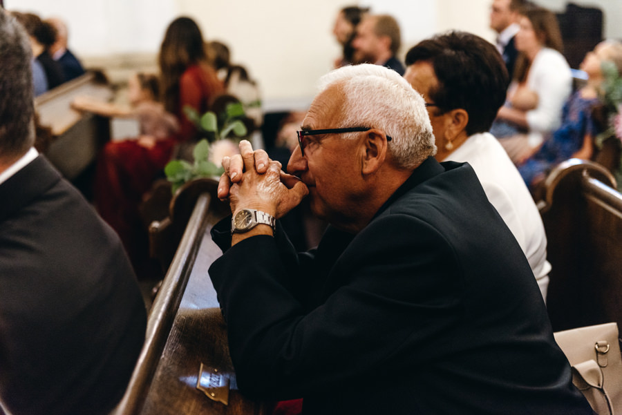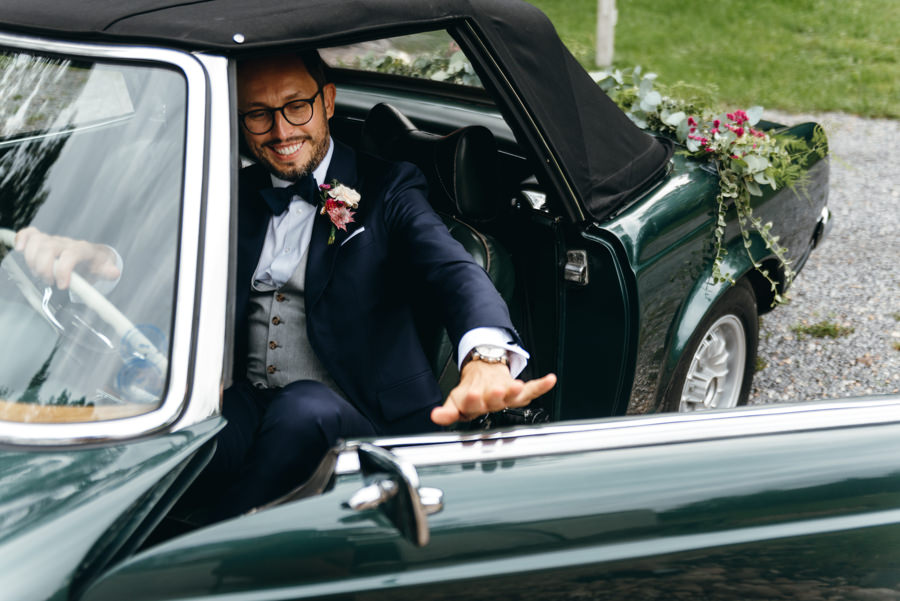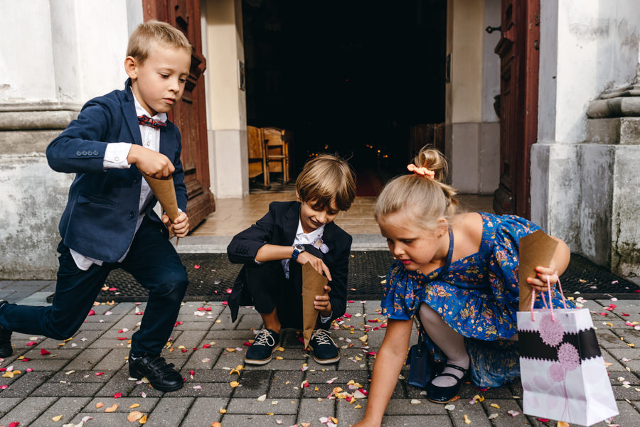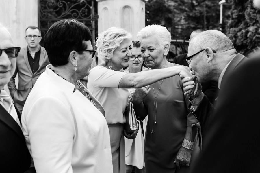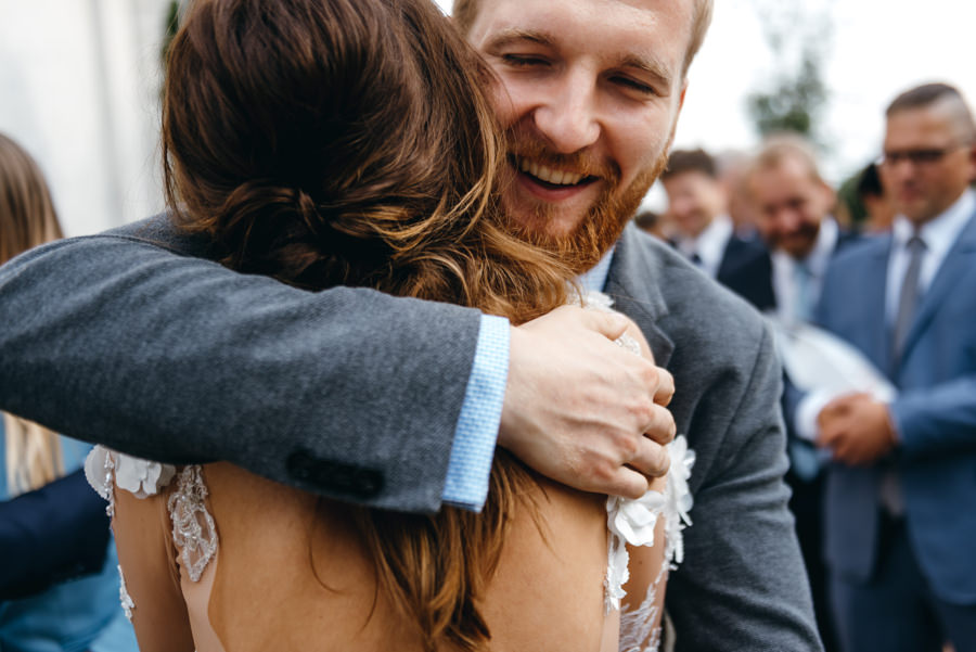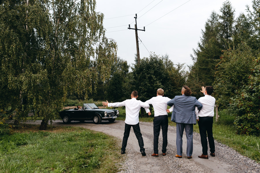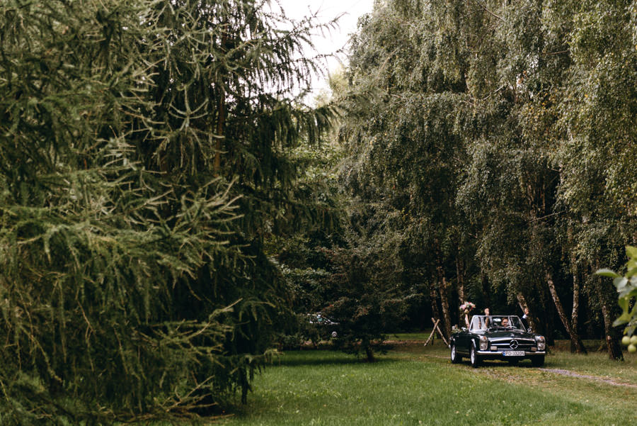 Styl wesela to nie jest impreza przebieranka. Para ma pozostać sobą. I dobrze się bawić. Tak jak Ola i Dominik. Szaleli na parkiecie, szczególnie jak na 2-3 sety przygrywała mega klimatyczna Warszawska Orkiestra Sentymentalna. Wygłupiali się przy torcie karmiąc się nim dość nietypowo. A na sesji z butelkowozielonym Mercedesem ledwo dałem radę zrobić im „normalne” zdjęcia, bo tak się chichrali. Nie dziwię się im. W końcu to był ich dzień. I to totalnie do nich dopasowany.