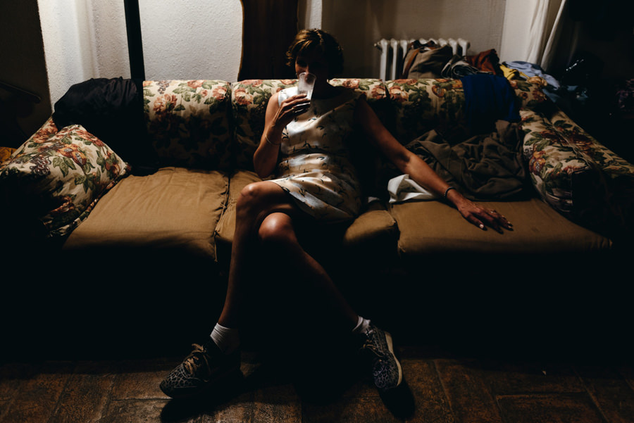 Wykorzystałem czas na typowo męskie portrety z przyrodą Toskanii w tle i pobiegłem do dziewczyn. Tam zaczęła się robić gorąca atmosfera, bo rozpoczęły się przygotowania przed ślubem. I chociaż słońce zaczęło nas opuszczać gdy dziewczyny skończyły się szykować, to i tak zaprosiłem je na zdjęcia. Energii dodawał kolor przewodni wesela – sjena palona, kolor sukni i wielu dodatków. Podkreślał ogień, jaki panował na tym weselu i energię wszystkich zebranych gości. Ale zanim o tym, posłuchajcie o ceremonii.