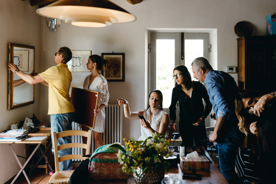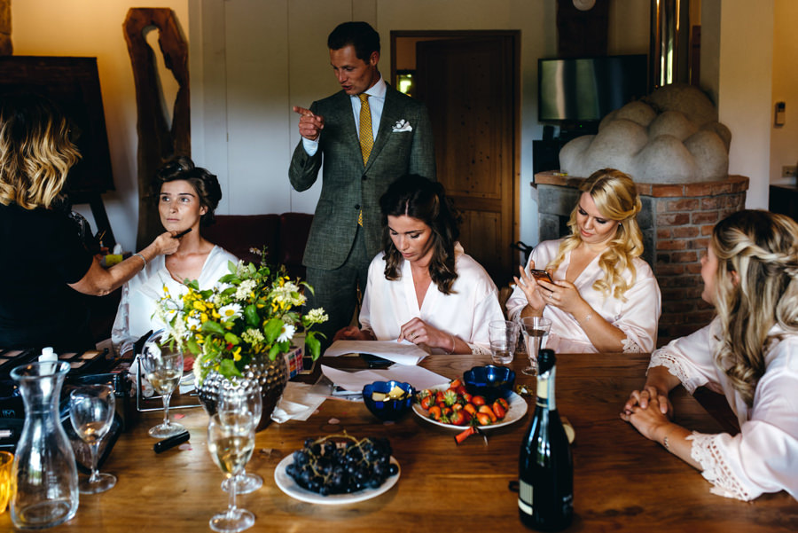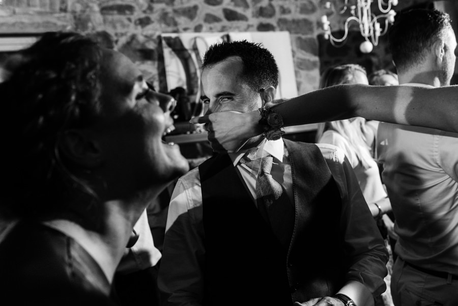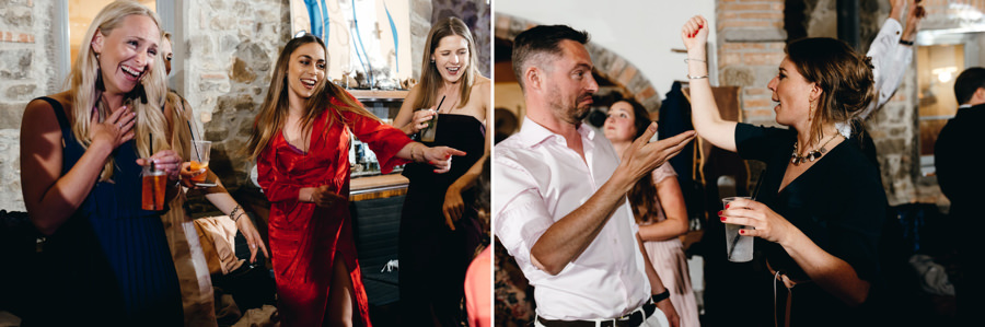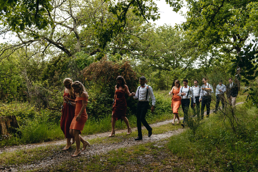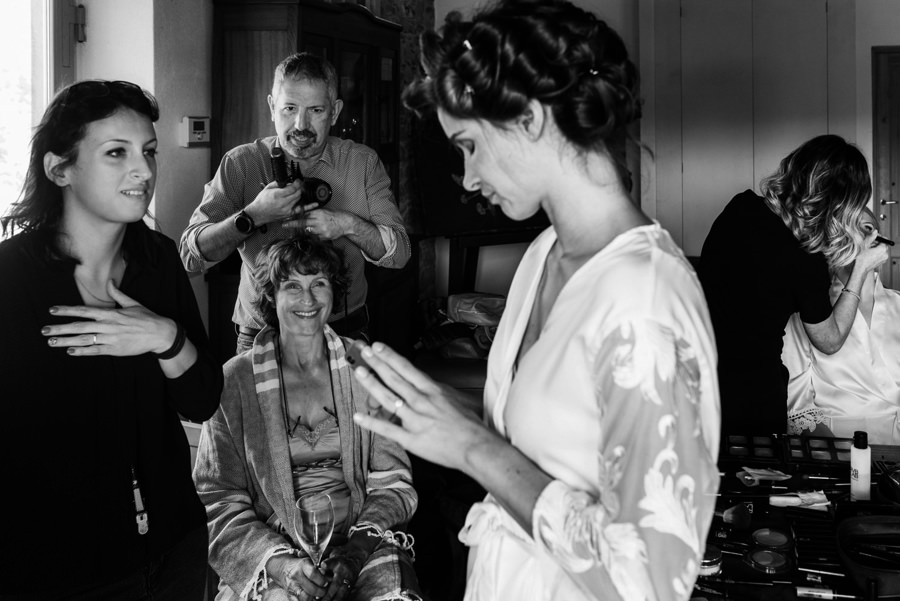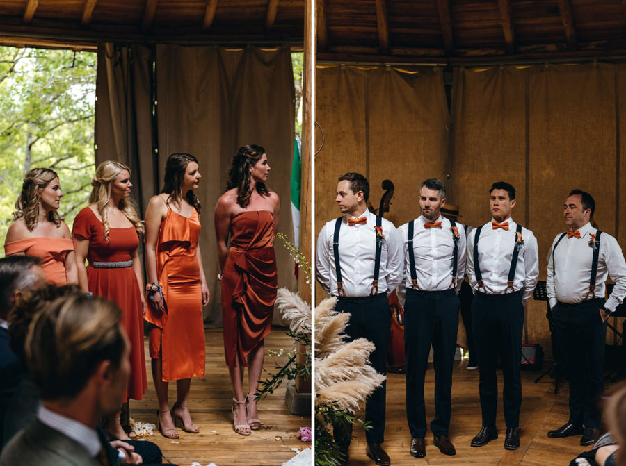 Wykorzystałem czas na typowo męskie portrety z przyrodą Toskanii w tle i pobiegłem do dziewczyn. Tam zaczęła się robić gorąca atmosfera, bo rozpoczęły się przygotowania przed ślubem. I chociaż słońce zaczęło nas opuszczać gdy dziewczyny skończyły się szykować, to i tak zaprosiłem je na zdjęcia. Energii dodawał kolor przewodni wesela – sjena palona, kolor sukni i wielu dodatków. Podkreślał ogień, jaki panował na tym weselu i energię wszystkich zebranych gości. Ale zanim o tym, posłuchajcie o ceremonii.