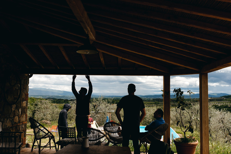 W Toskanii znalazłem się dzięki koledze ze studiów, który pracował wraz z Alice. Polecił mnie, ja Fabrykę Kreatywną i taka oto polska drużyna przyleciała na międzynarodowy ślub do Toskanii, który odbył się w niezwykłym miejscu. La selva Giardino del Belvedere to ponad 300-letnia willa, położona na wzgórzach Chianti. Otoczona łąkami i gajami oliwnymi posiada nawet amfiteatr, w którym odbywają się przedstawienia. To miejsce z takim klimatem – ale to wiadomo. Przecież to Toskania! Nawet w deszczu zachwyca.