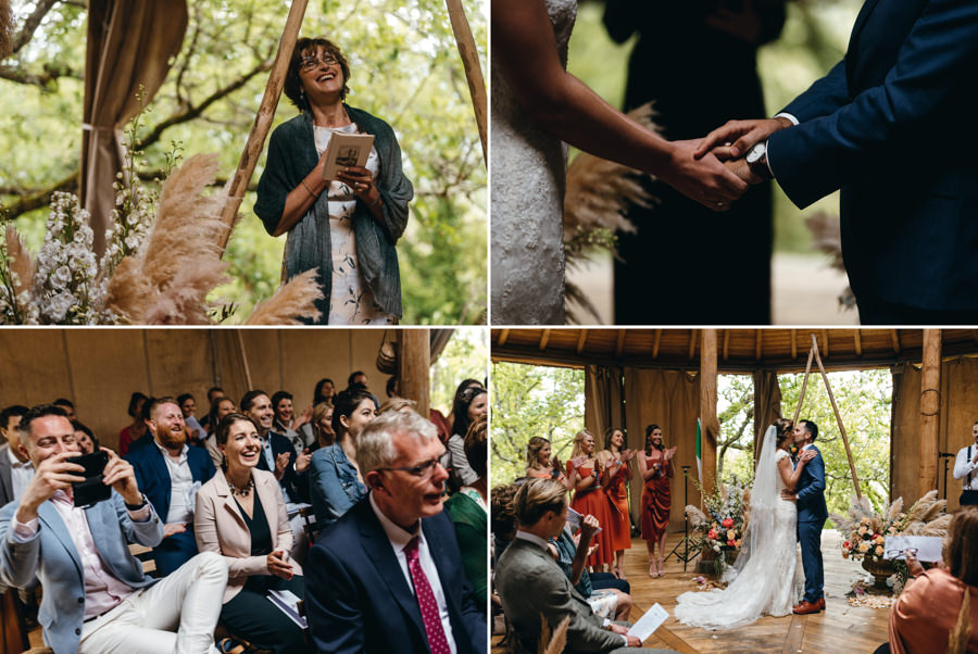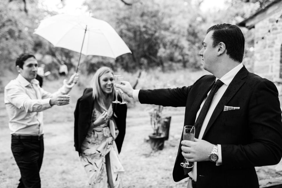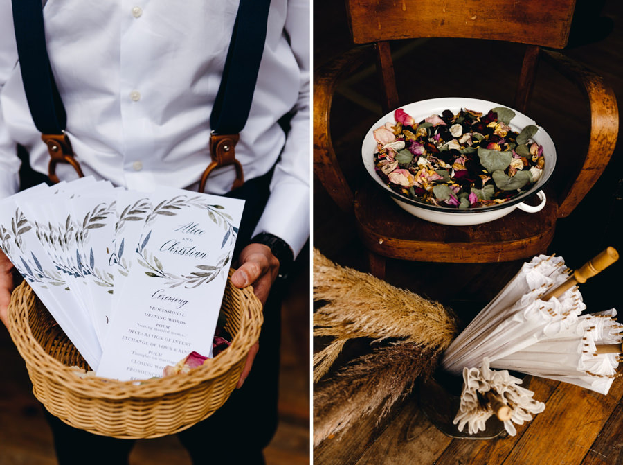 Alice i Chris dzięki zaproszeniu na ślub najbliższych, mieli ceremonię jak z romantycznego filmu. Były i łzy wzruszenia, i śmiech, który zagłuszał zacinający deszcz. Były i przemówienia i wiersze. I muzyka fenomenalnego zespołu The Old Florence Dixie Band. I to wszystko, co powinno być na ceremonii – szczęście, radość i emocje. Jak tu przejmować się deszczem?