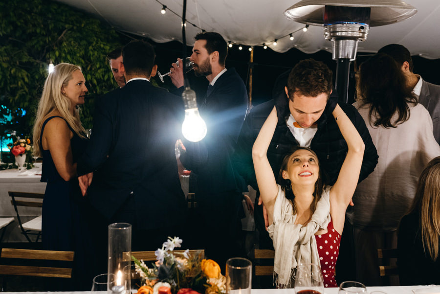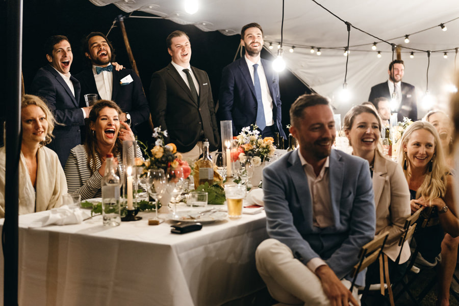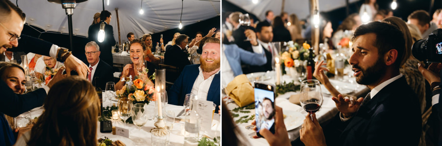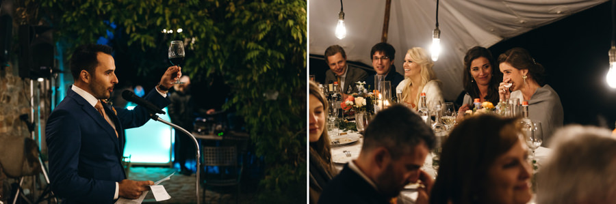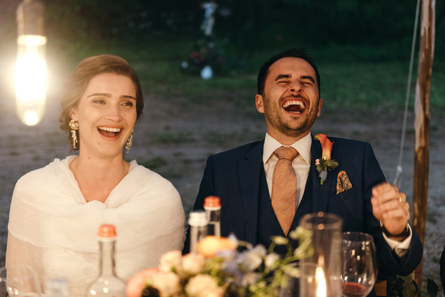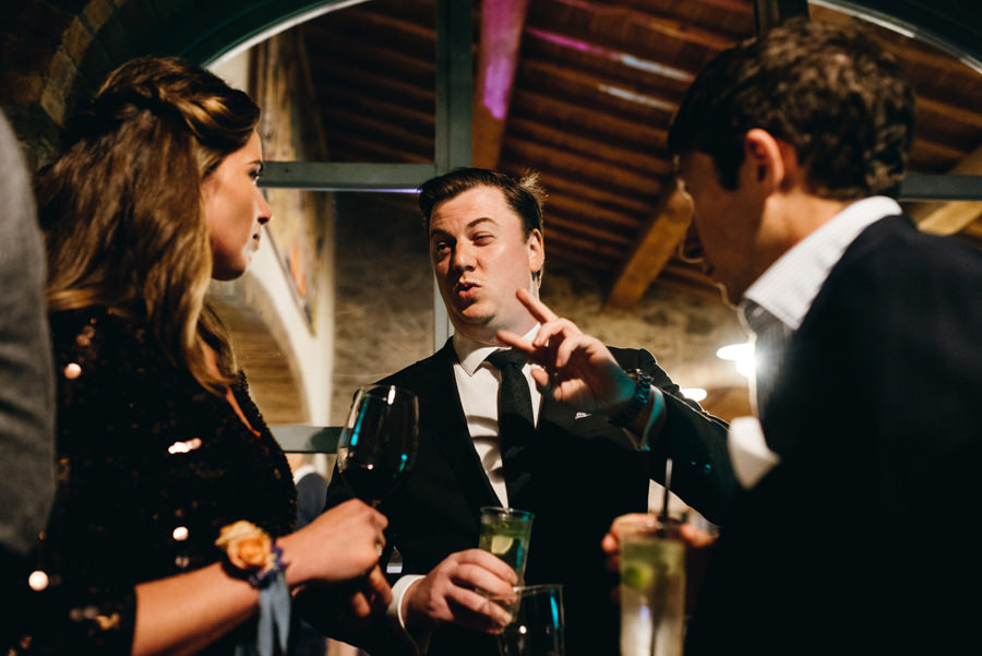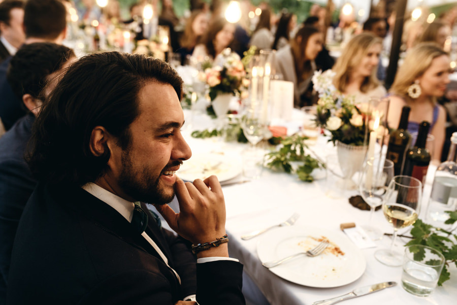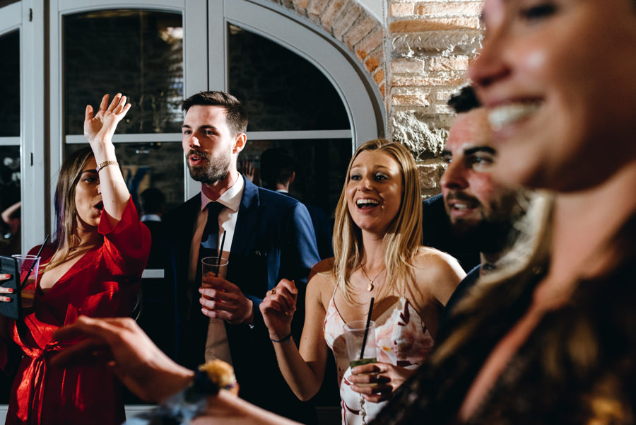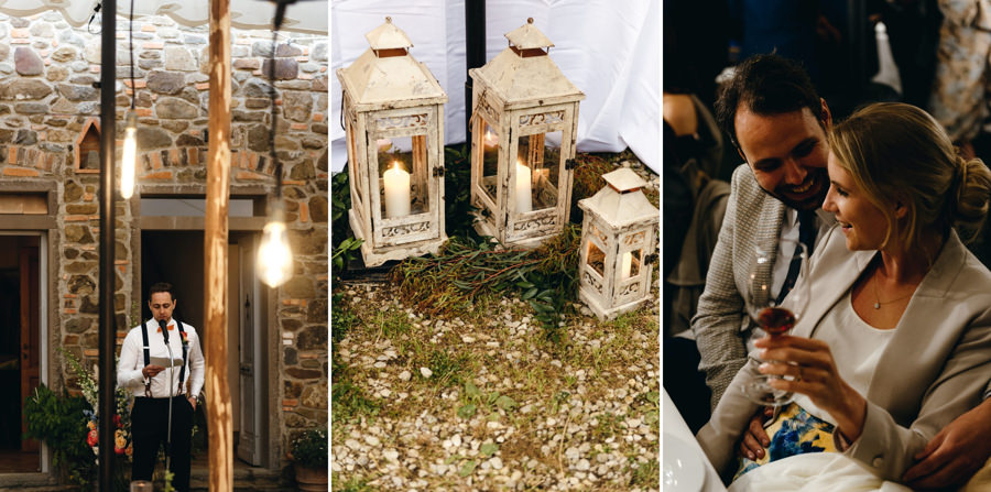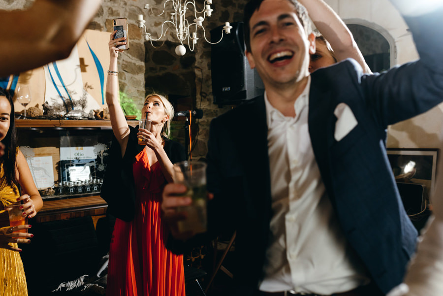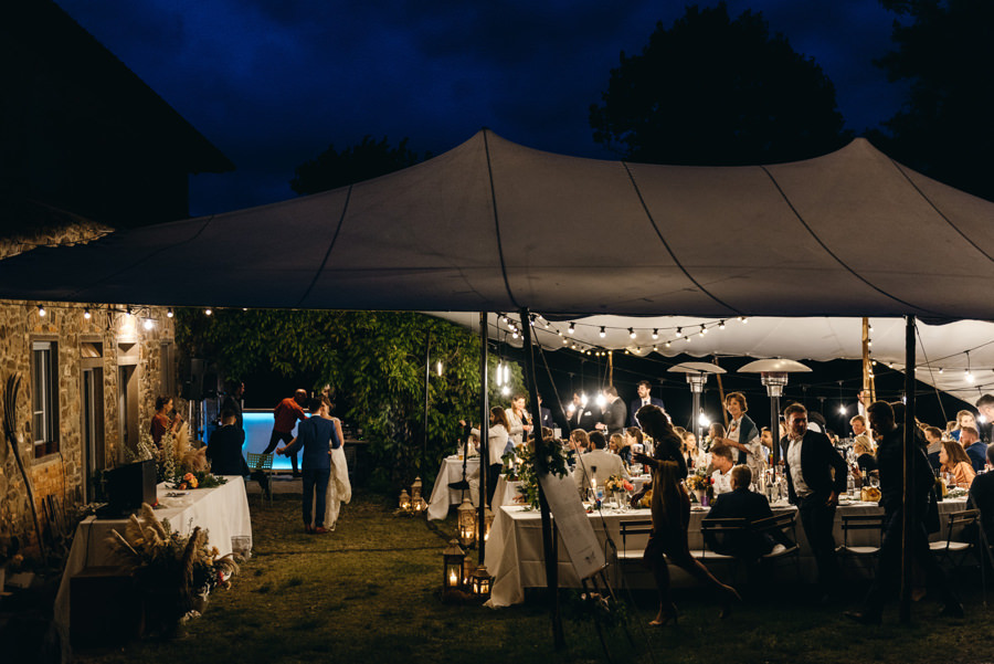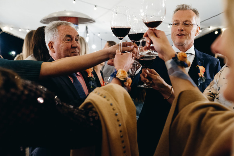 Przyjęcie odbyło się przy długich stołach, na zewnątrz, pod ciekawym namiotem z białego płótna. Z gośćmi, którzy na przemian grzali się przy stołach pod kocami i na parkiecie. I chociaż faktycznie wieczór był chłodny, to ocieplały go emocje. Do samego końca tej imprezy. A skąd to wiem? Wspólnie z parą zamknąłem tę imprezę! Niewiele jest takich miejsc na świecie jak Polska, gdzie wesela trwają do rana. W Toskanii zabawa skończyła się wtedy, gdy w kraju nad Wisłą impreza dopiero się zaczyna ;).
