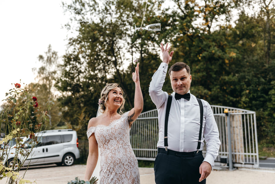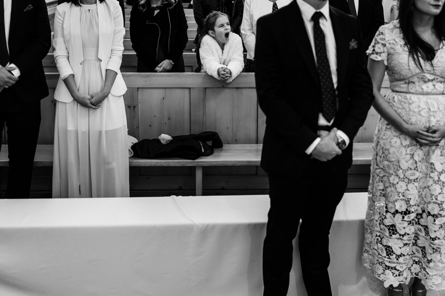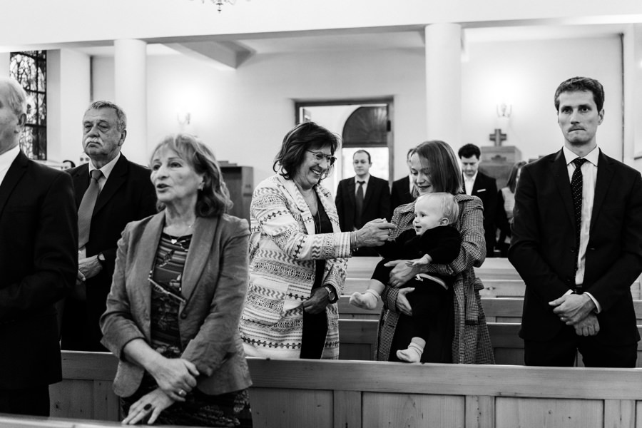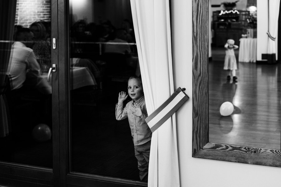 Tuż po ceremonii pogoda stała się bardziej przyjazna dla ślubnego reportażu. Dwór Kociołek mógł zabłysnąć w całej krasie, ponieważ wyszło słońce. Pozwoliło nam tona szybką 15 minutową sesję zdjęciowa – maluch miał tam też swoje zasłużone miejsce.