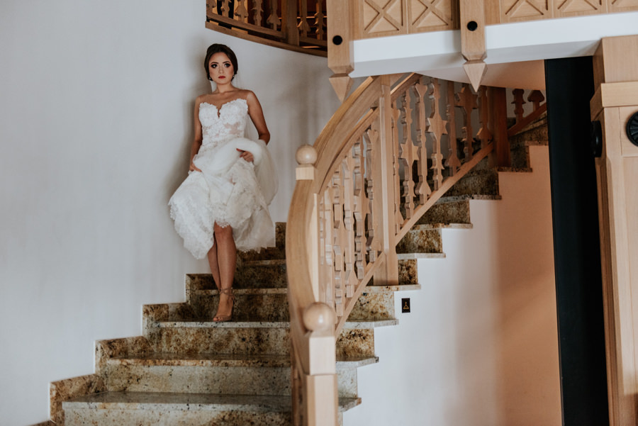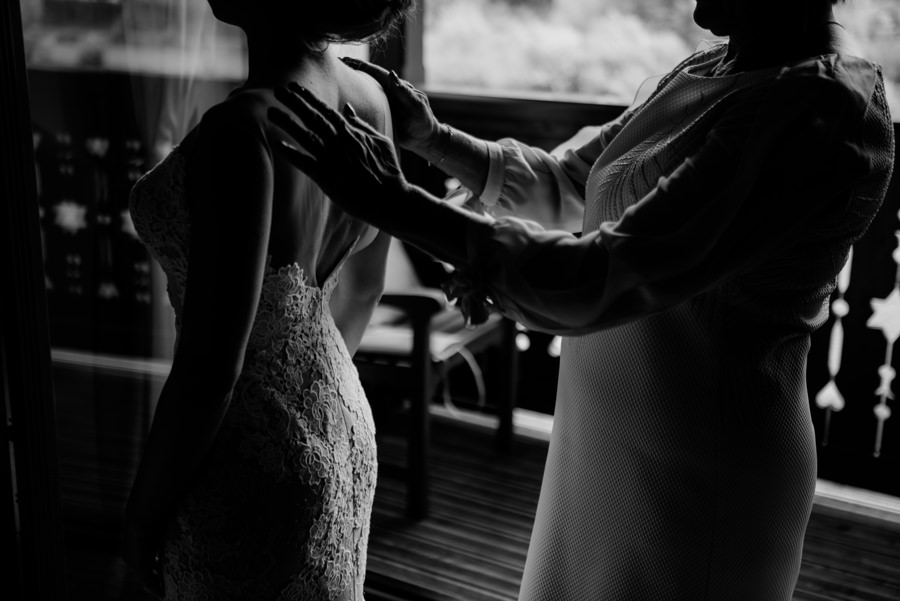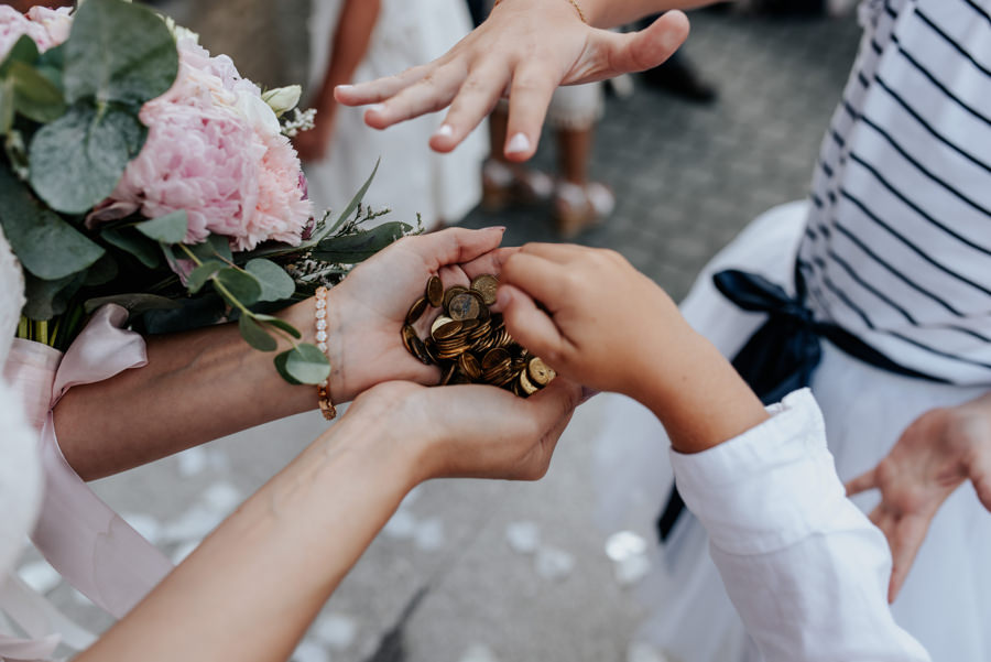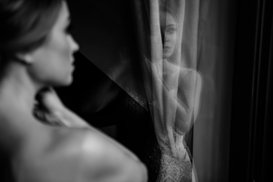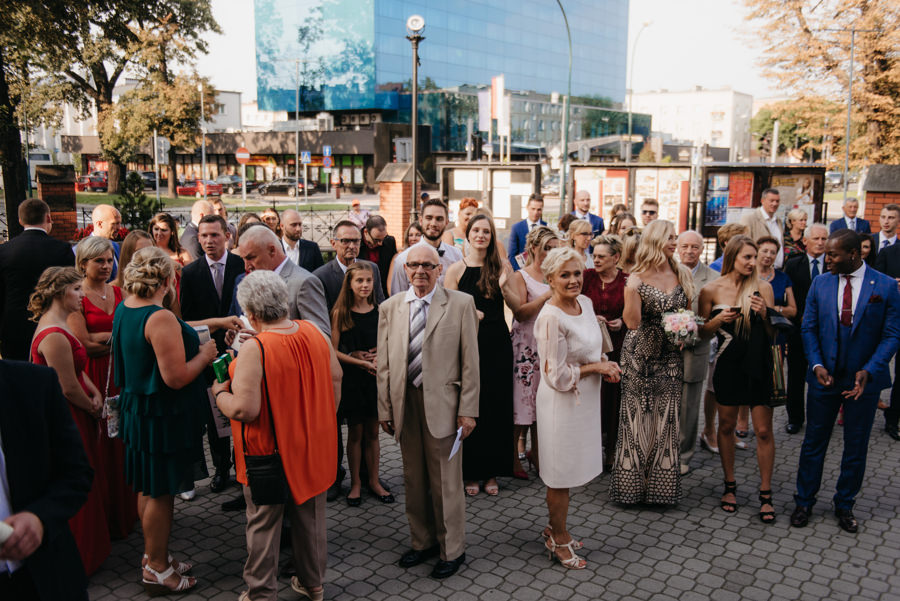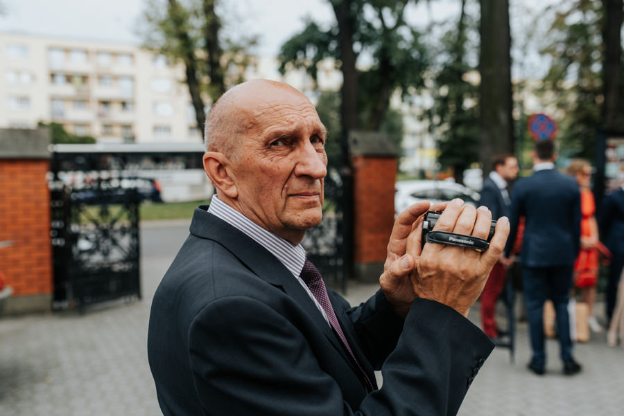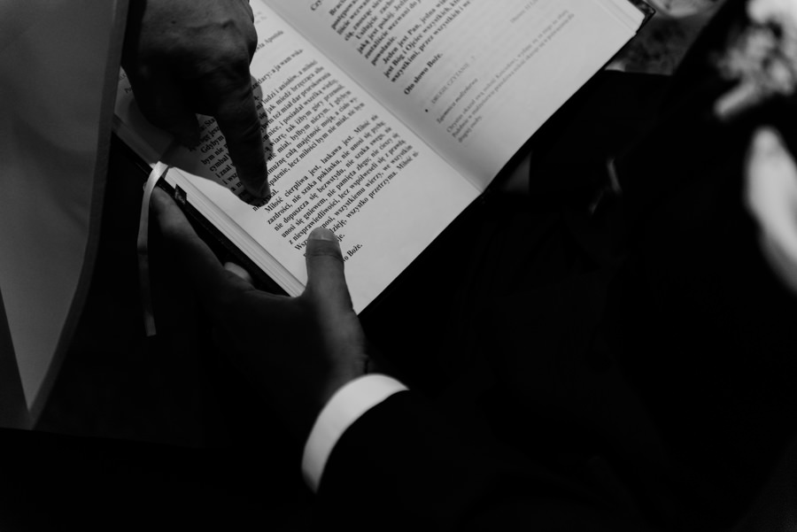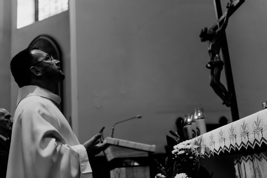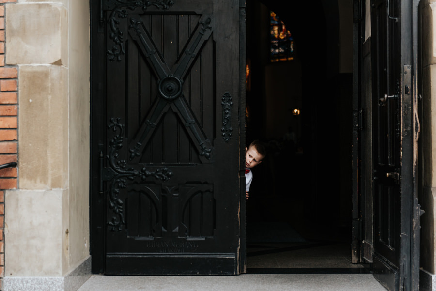Uroczystość ślubna odbyła się w kościele Najświętszego Serca Pana Jezusa w Nowym Sączu. Tradycji stało się zadość – Pan Młody zobaczył swoją wybrankę (poprowadzoną do ołtarza przez brata) dopiero w świątyni! Przed złożeniem przysięgi Młodzi wysłuchali przepięknego kazania, a sam moment zaślubin również okazał się wyjątkowy. Ksiądz poprosił bowiem rodzinę Moniki i Tolka o zgromadzenie się przed prezbiterium. Myślę, że każdy fotograf ślubny marzy o takich, pełnych intymności i patosu, chwilach. Dzięki nim właśnie reportaż ślubny w naszym wydaniu nabiera prawdziwie indywidualnych cech.