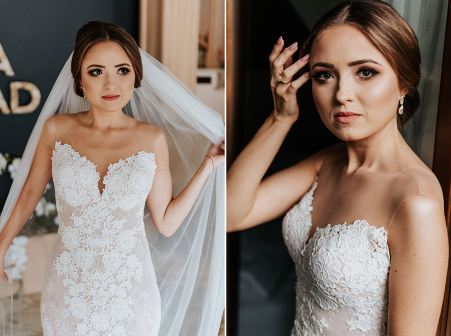 Monika i Tolek to kolejny przykład takiej pary, która ślub i wesele planowała na odległość (mieszkają bowiem poza granicami naszego kraju). Jak widać jednak nie przeszkodziło im to w zorganizowaniu imprezy na długo pozostającej we wspomnieniach wszystkich zgromadzonych. Przygotowanie Panny Młodej miało miejsce w Hotelu Willa Poprad, a za makijaż odpowiadał nie byle kto, bo sama Mistrzyni Świata Make Up na „Esthetic Show” – Klaudia Kłos. Jeśli taką rekomendację uważacie za niewystarczającą to po prostu spójrzcie na zdjęcia – efekt jej pracy prezentuje się wspaniale.