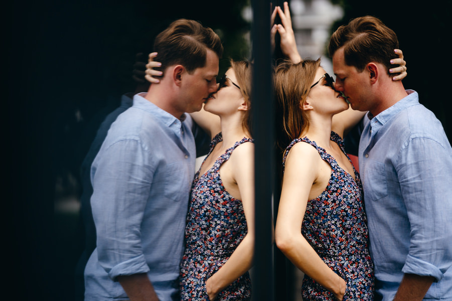 Data sesji była niezłym zbiegiem okoliczności, dokładnie rok zanim Klaudia i Kuba powiedzą sobie „TAK”. Klaudia stwierdziła, że to na pewno korzystny znak. Pogoda okazała się dla nas łaskawa. Były ostre cienie, kontrasty, które idealnie wpasowały się w cały klimat sesji. Wiecie, że lubię eksperymenty i dla mnie każde światło ma swoje zalety. Nawet deszcz mi nie straszny, bo można go fajnie wykorzystać do zdjęć.