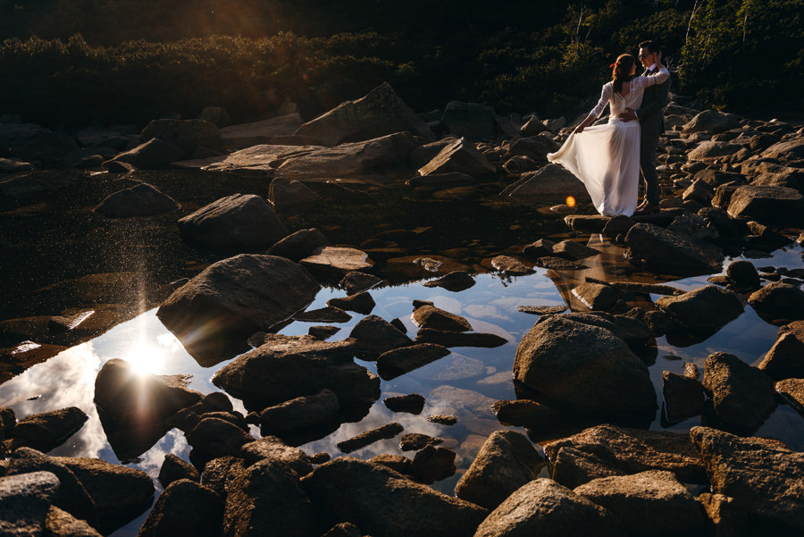 Nasze ślubne spotkanie nie zakończyło się wraz z oczepinami. Ania i Tomek, jako miłośnicy gór, nie wyobrażali sobie innego miejsca na sesję, jak góry. Na zdjęcia ślubne wybraliśmy się na Śnieżne Kotły w Karkonoszach.