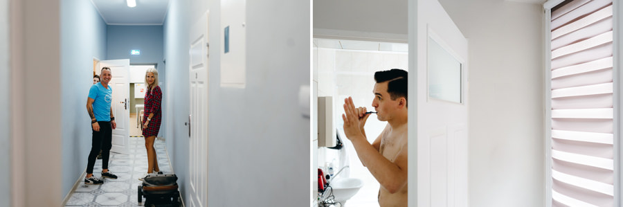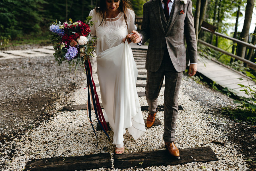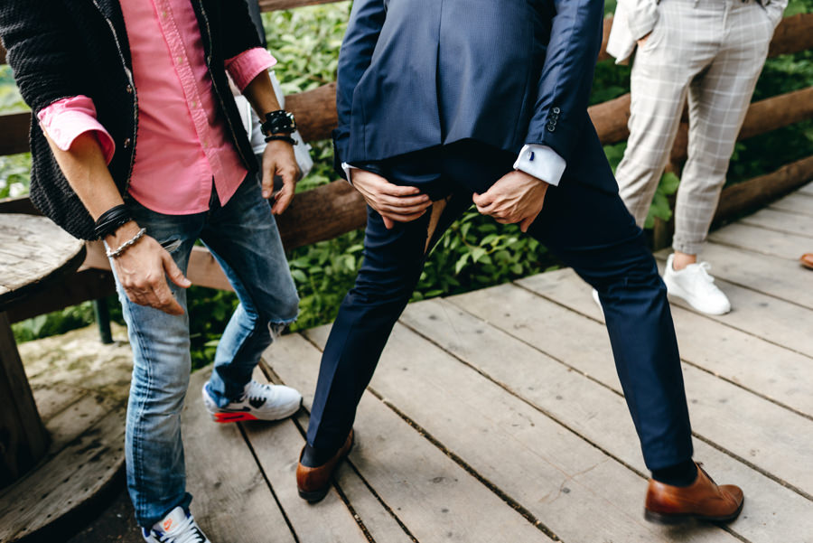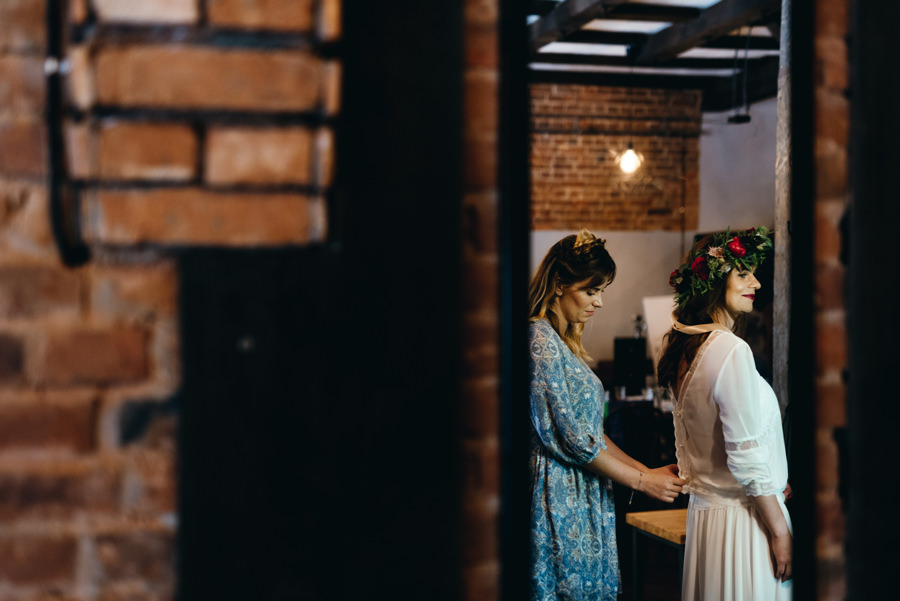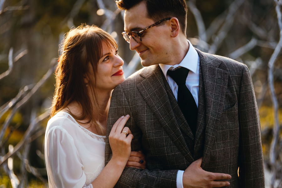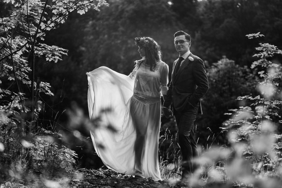 Przykłady? Proszę bardzo – pan młody szykował się w tym malowniczym lesie, a panna młoda w industrialnych wnętrzach Kruszarni. Na koniec każdemu z nich wykonałem portrety, bo jak już pewnie zauważyliście, wykorzystuję zawsze kilka chwil na takie zdjęcia jeszcze zanim para się zobaczy. A jeśli chodzi o first look, to też dali czadu. Czy wiecie, że pierwszy raz zobaczyli się dopiero w trakcie ceremonii? Ile osób marzy o takim rozwiązaniu, a ile decyduje się i konsekwentnie wciela to marzenie w życie?