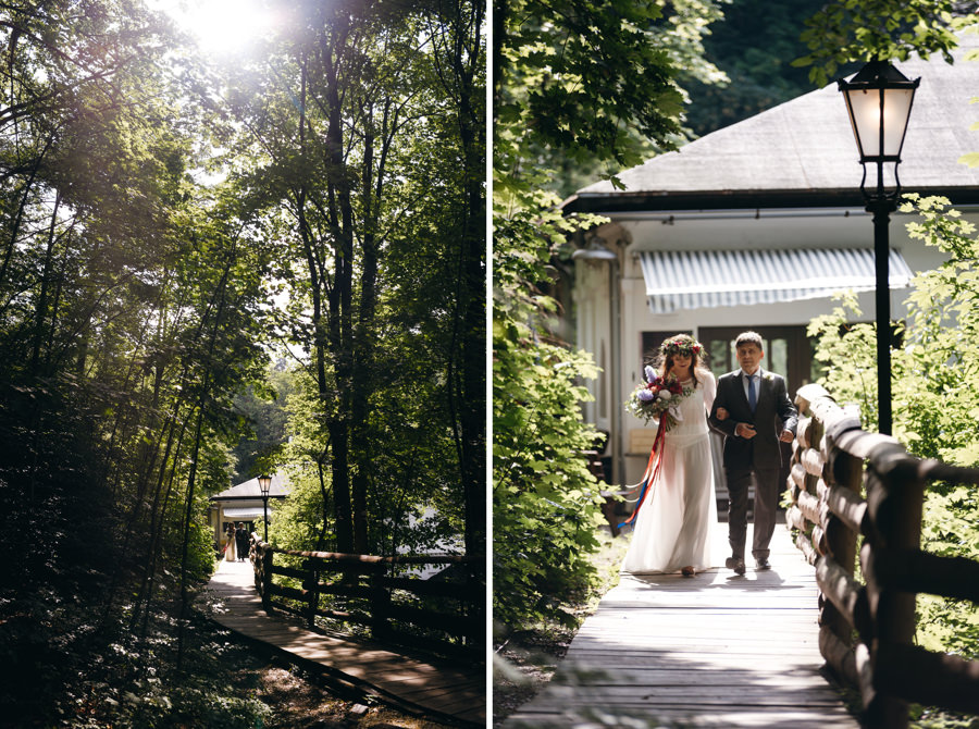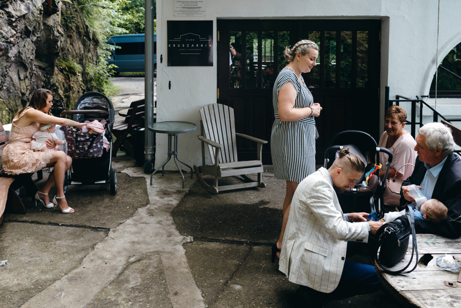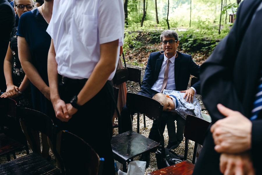 Na ślub w plenerze do Starej Kruszarni jechałem od moich przyjaciół z Wrocławia i pamiętam, że pogoda była fatalna. Zacinał taki deszcz, że wlokłem się za ciężarówkami, bo widoczność była prawie zerowa. Wycieraczki nie nadążały zbierać tego, co wyprodukowały ciemne chmury nade mną. Pomyślałem, że to się nie może udać. I czemu znów jest tak, że jest fajna para, świetna miejscówka, a polska nieprzewidywalna pogoda ma to wszystko zepsuć? Jak w takich warunkach ma odbyć się ślub plenerowy gdzieś w środku lasu?