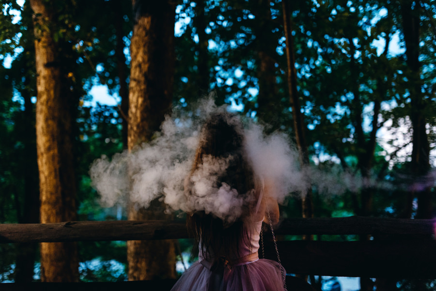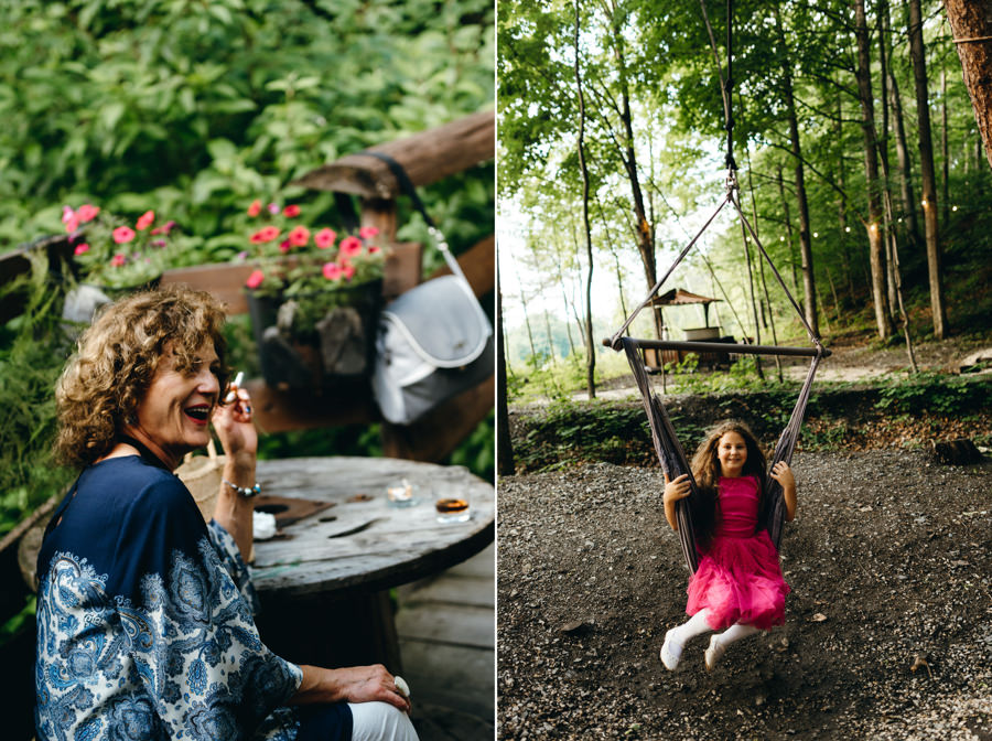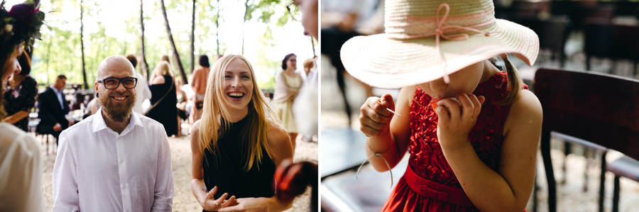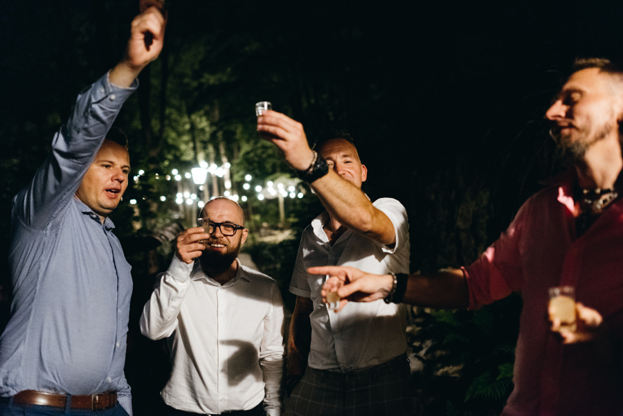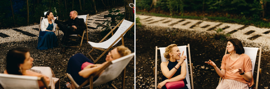 Na koniec warto zwrócić uwagę, że na weselu w Starej Kruszarni goście mają niezwykłą strefę chilloutową. W nocy las zamienia się w strefę relaksu, oświetloną setką żarówek. Można tu odpoczywać na leżakach integrując się z resztą, lub samotnie napawać się chwilą w leżaku. Co kto woli. Ja wolałem zakraść się i uwiecznić na zdjęciach to, jak fajnie można bawić się na weselu.