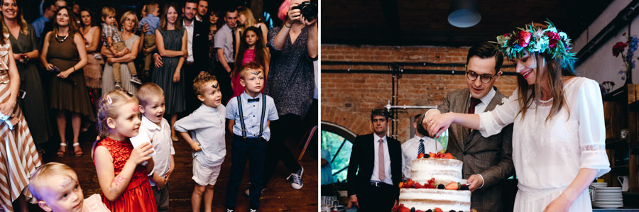 Ania i Tomek doskonale wykorzystali to miejsce do realizacji swojego ślubnego planu i dlatego mam wrażenie, że wszystko było skrzętnie zaplanowane tak, by maksymalnie wykorzystać przestrzeń Kruszarni.