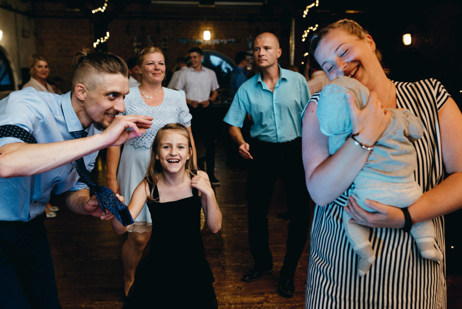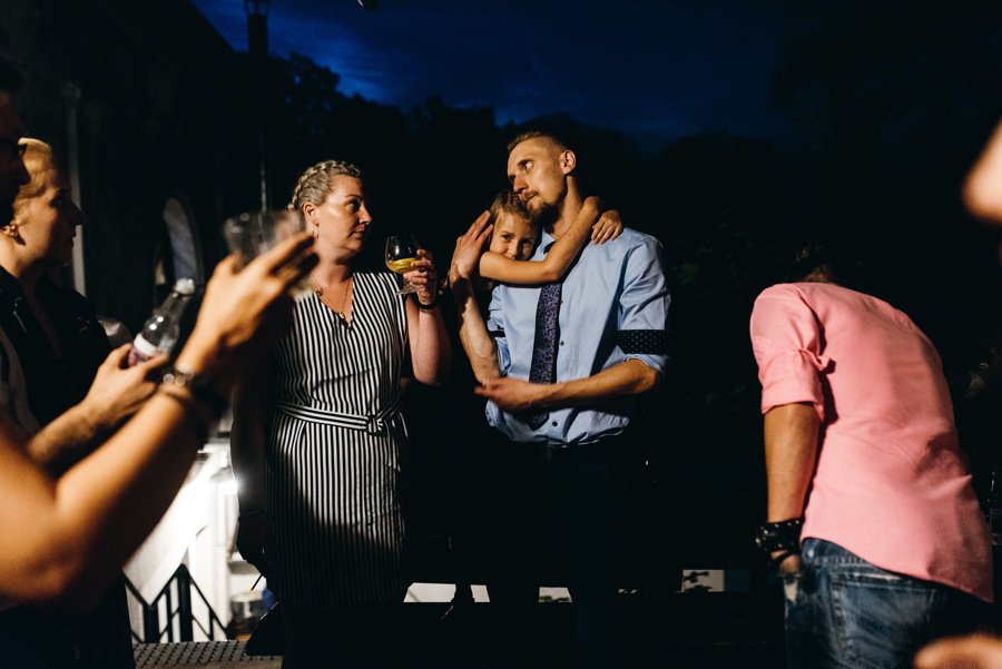 Po szybkim pierwszym tańcu, zaczęła się tradycyjna zabawa na parkiecie. W tym czasie udało mi się wyciągnąć Anię i Tomka na kilka zdjęć. Nie mogłem odmówić sobie wykorzystania zarówno miejsca, jak i światła, by wyczarować kilka zdjęć świeżo upieczonej pary młodej. Pod koniec dołączyli do nas goście i dzięki temu udało się nam zrobić tradycyjne pozowane zdjęcia do ramek. Wbrew pozorom, te zdjęcia mają ogromną sentymentalną moc, szczególnie przekonacie się o tym za kilka czy kilkanaście lat.