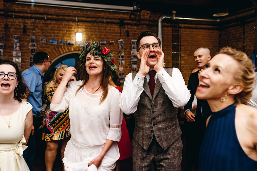 Po zaślubinach w lesie, wspólnym zdjęciu z gośćmi i życzeniach, rozpoczęła się szalona impreza, tym razem we wnętrzach Starej Kruszarni.