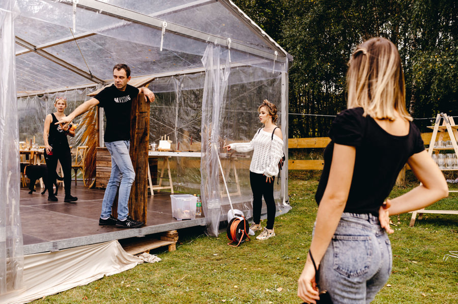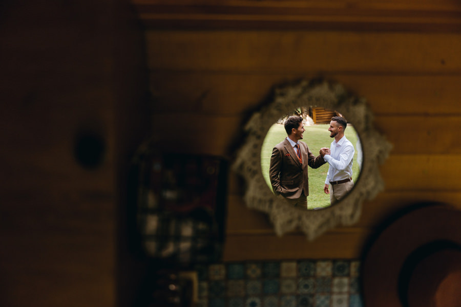 Cały dzień ślubu tej pary zorganizowany był w jednej przestrzeni. Asia szykowała się w agroturystyce, a Karol w ich vanie, zaparkowanym tuż obok, którym podróżują po świecie.