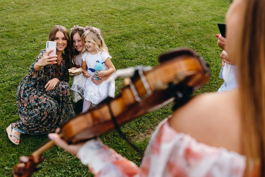 Cała ceremonia ślubu była ciekawie zaaranżowana. Goście wraz z panem młodym czekali na przybycie panny młodej, którą przyprowadzał tata. W tle słychać było śpiew ptaków i skrzypaczkę, która muzyką podkręcała klimat.