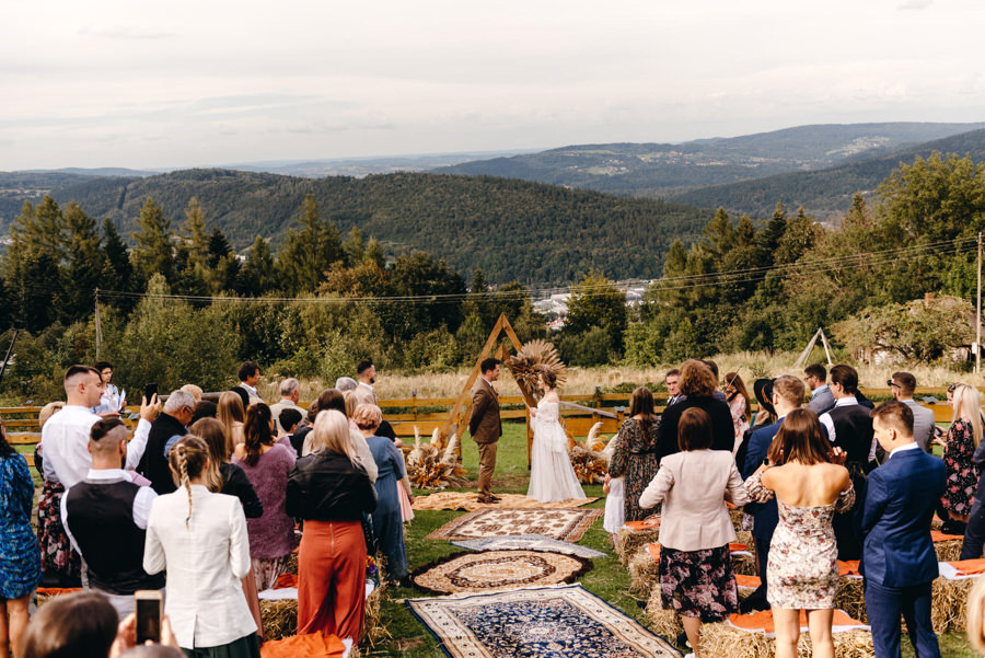 Boho ślub w plenerze z widokiem na Beskidy