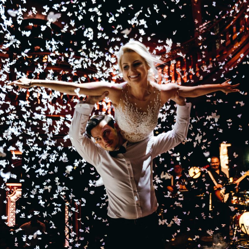 Suknia Panny Młodej wiruje w pierwszym tańcu, naszyte na niej kryształy odbijają kolorowe światło lamp. Wszystko jest jak w bajce. W powietrzu unosi się radość i wzruszenie zgromadzonych gości, którzy urodę Pary Młodej mogli podziwiać już wcześniej, podczas ceremonii kościelnej. To tam padły piękne słowa księdza skierowane do zakochanych w sobie ludzi, sakramentalne „tak”, pojawiły się łzy wzruszenia.